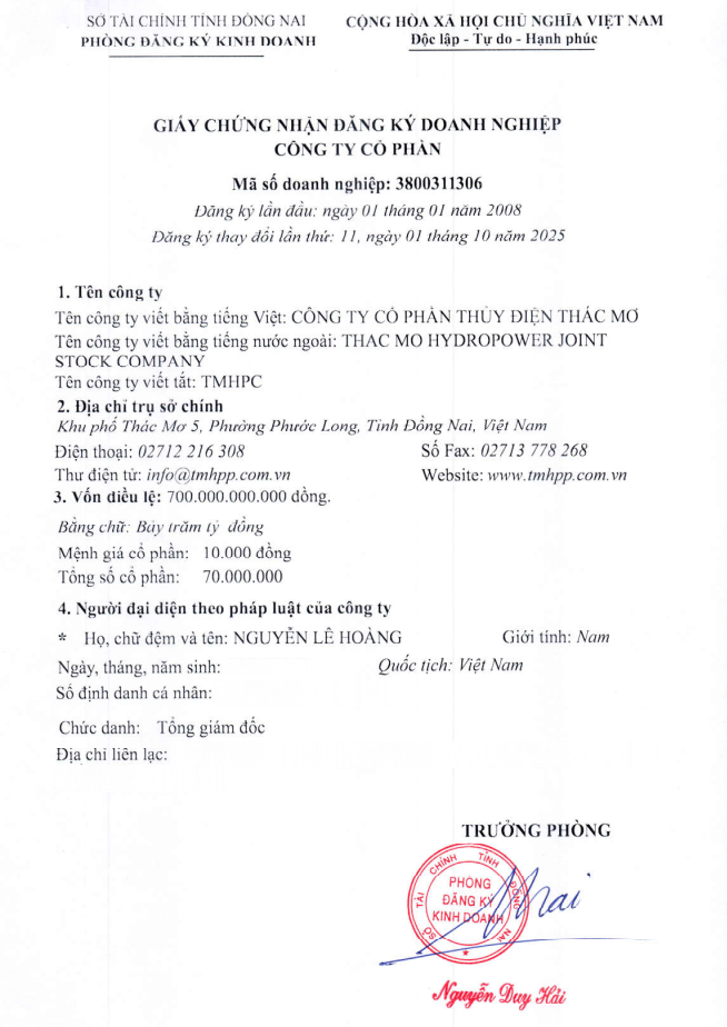Từ ngày 01/01/2008 chính thức hoạt động theo Luật Doanh nghiệp với tên giao dịch là Công ty cổ phần thuỷ điện Thác Mơ