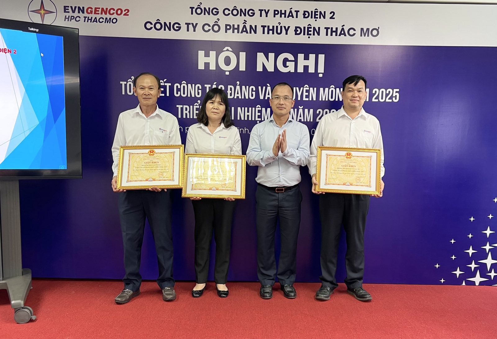 Bí thư Đảng ủy, Chủ tịch Hội đồng quản trị TMP Huỳnh Văn Khánh trao Giấy khen của EVNGENCO2 cho các cá nhân TMP