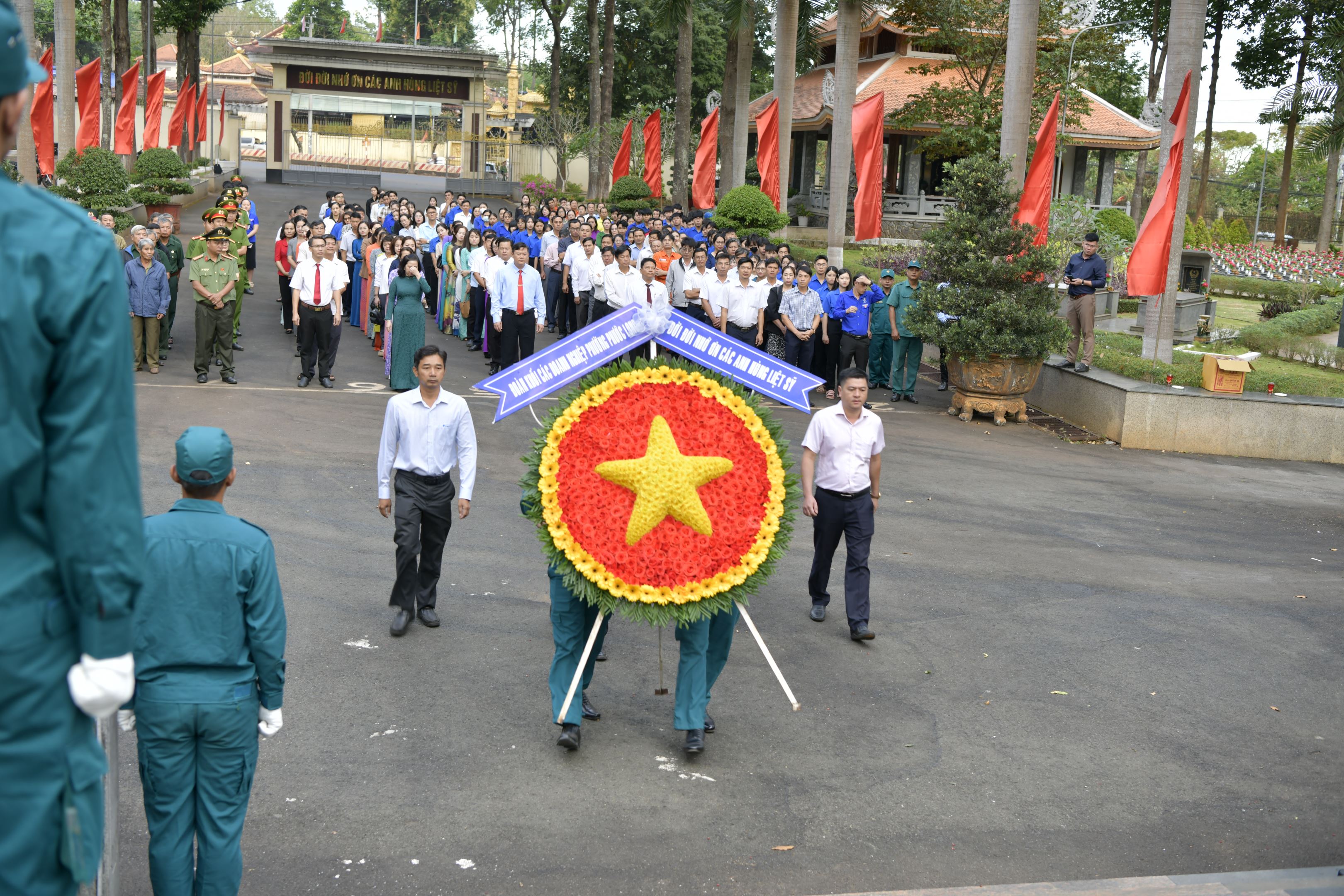 Về phía TMP có ông Đinh Văn Sơn - Phó Tổng Giám đốc Công ty làm trưởng đoàn, cùng đại diện các đơn vị và đông đảo cán bộ, công nhân viên đã đến dâng hoa, thắp hương tưởng niệm tại Nghĩa trang liệt sĩ Phước Long.