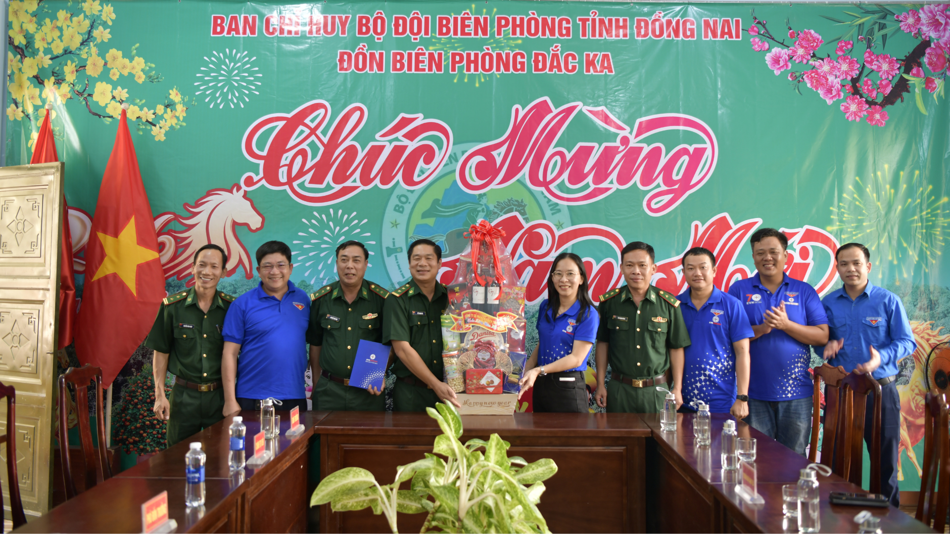 Tiếp nối hành trình Xuân tình nguyện 2026, Đoàn Thanh niên đã đến thăm Đồn Biên phòng Đắk Ka, tỉnh Đồng Nai để tổ chức chương trình “Xuân Biên phòng – Ấm lòng quân dân”. Trong không khí ấm áp, nghĩa tình, Đoàn đã thăm hỏi, động viên và trao quà đến cán bộ, chiến sĩ đang làm nhiệm vụ nơi biên cương Tổ quốc; đồng thời thực hiện và gắn biển Công trình thanh niên điện năng lượng mặt trời áp mái, tổ chức hành quân thực tế tuyến biên giới, tham quan cột mốc. Các hoạt động giao lưu văn nghệ, trò chơi tập thể đã góp phần gắn kết quân – dân, lan tỏa tinh thần sẻ chia và hơi ấm mùa xuân nơi tuyến đầu Tổ quốc.