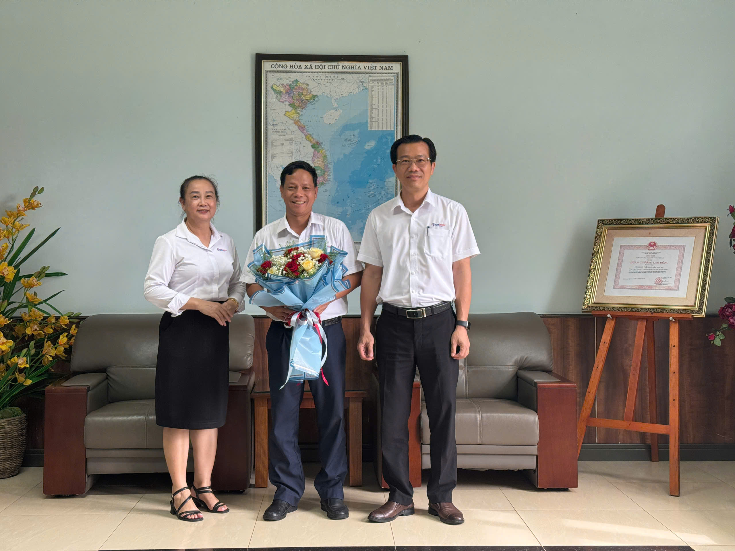 Anh Huỳnh Thanh Thế - Chuyên viên KHVT nhận hoa chúc mừng sinh nhật