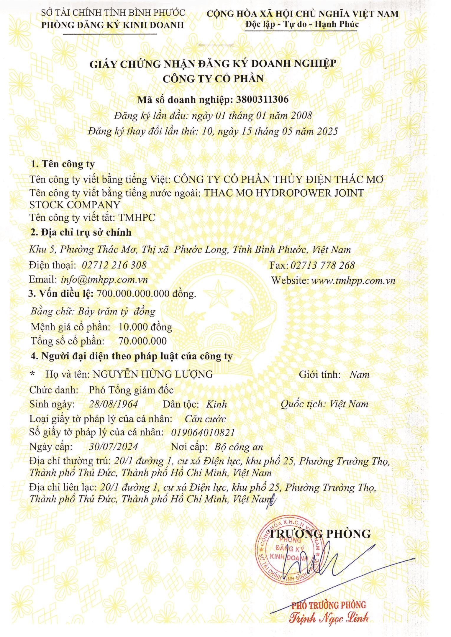 Từ ngày 01/01/2008 chính thức hoạt động theo Luật Doanh nghiệp với tên giao dịch là Công ty cổ phần thuỷ điện Thác Mơ