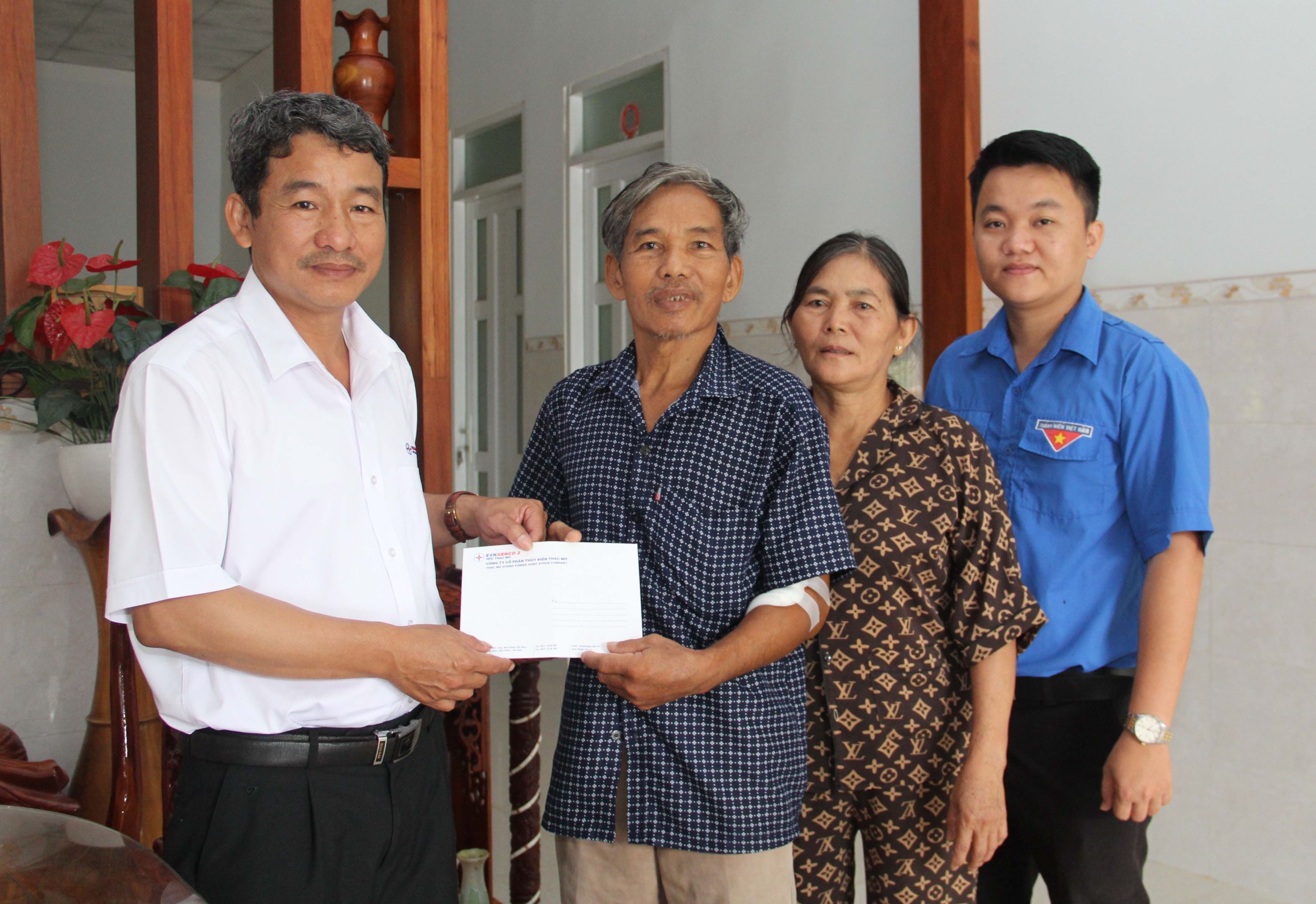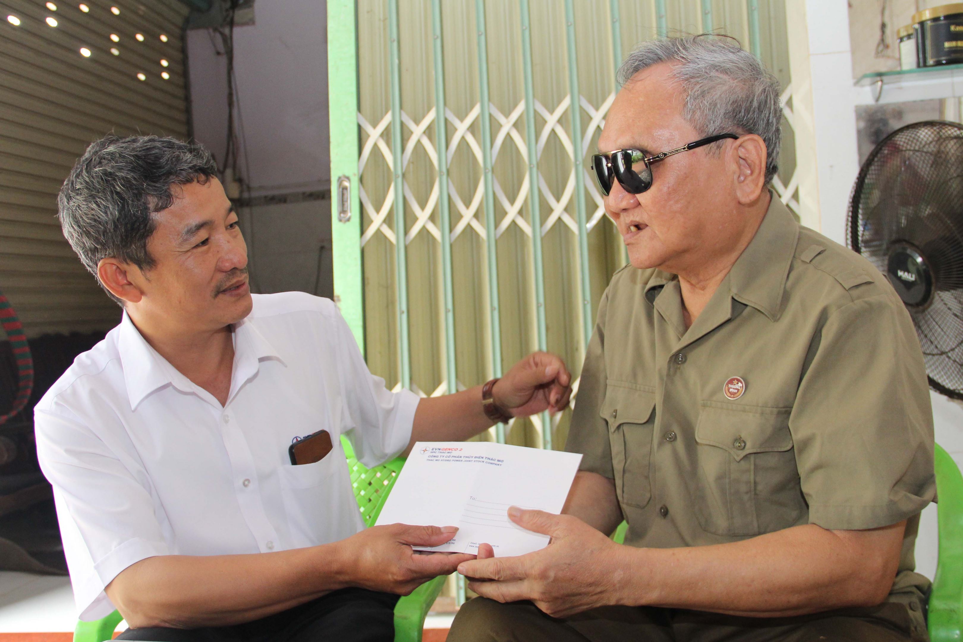 Anh Nhâm Sỹ Quyến - Đại diện TMP đến thăm hỏi và tặng quà thương binh Nguyễn Văn Ba tại phường Thác Mơ, thị xã Phước Long, tỉnh Bình Phước