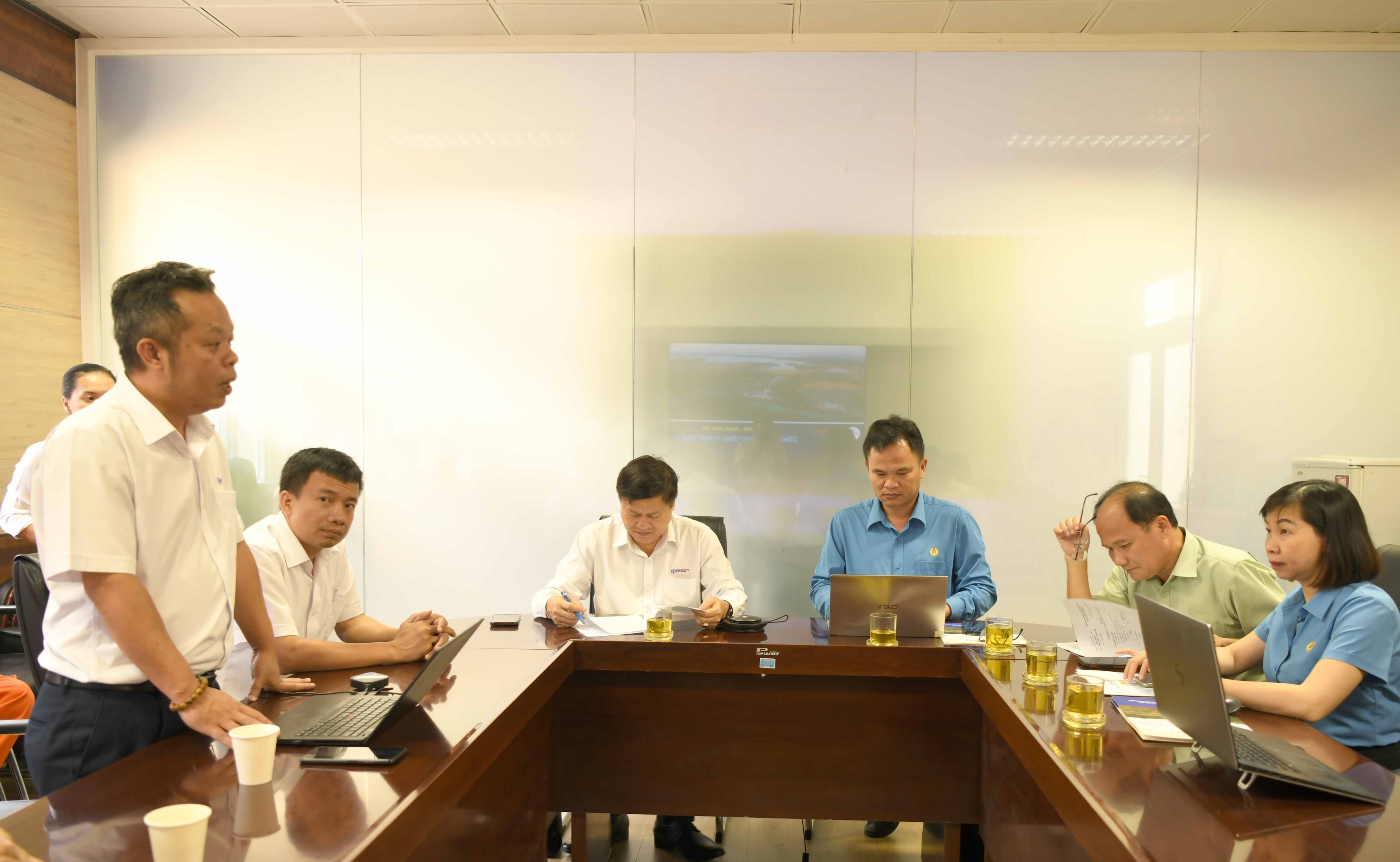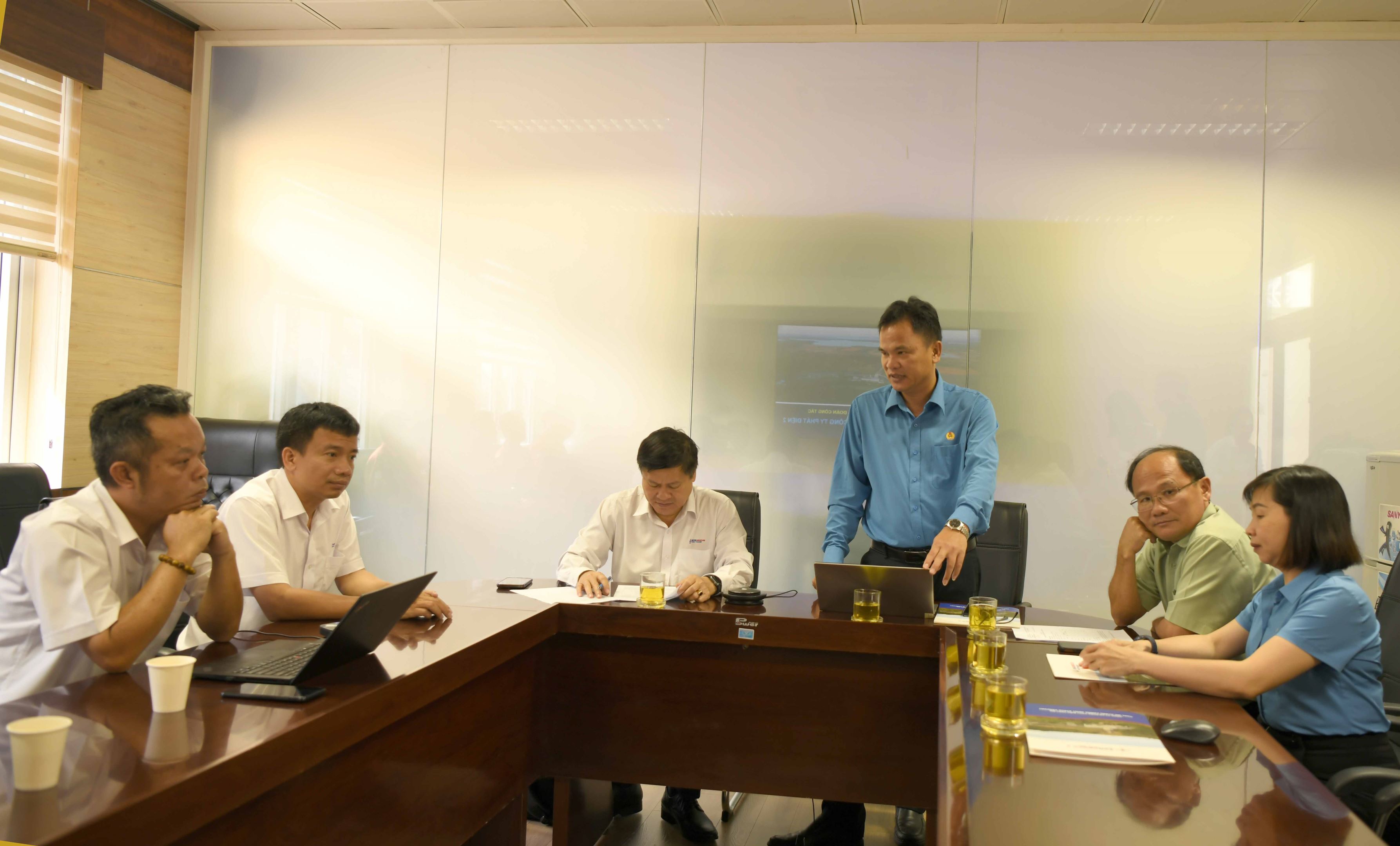 Chủ tịch công đoàn EVNGENCO2 Bùi Văn Thắng phát biểu chỉ đạo tại buổi làm việc.