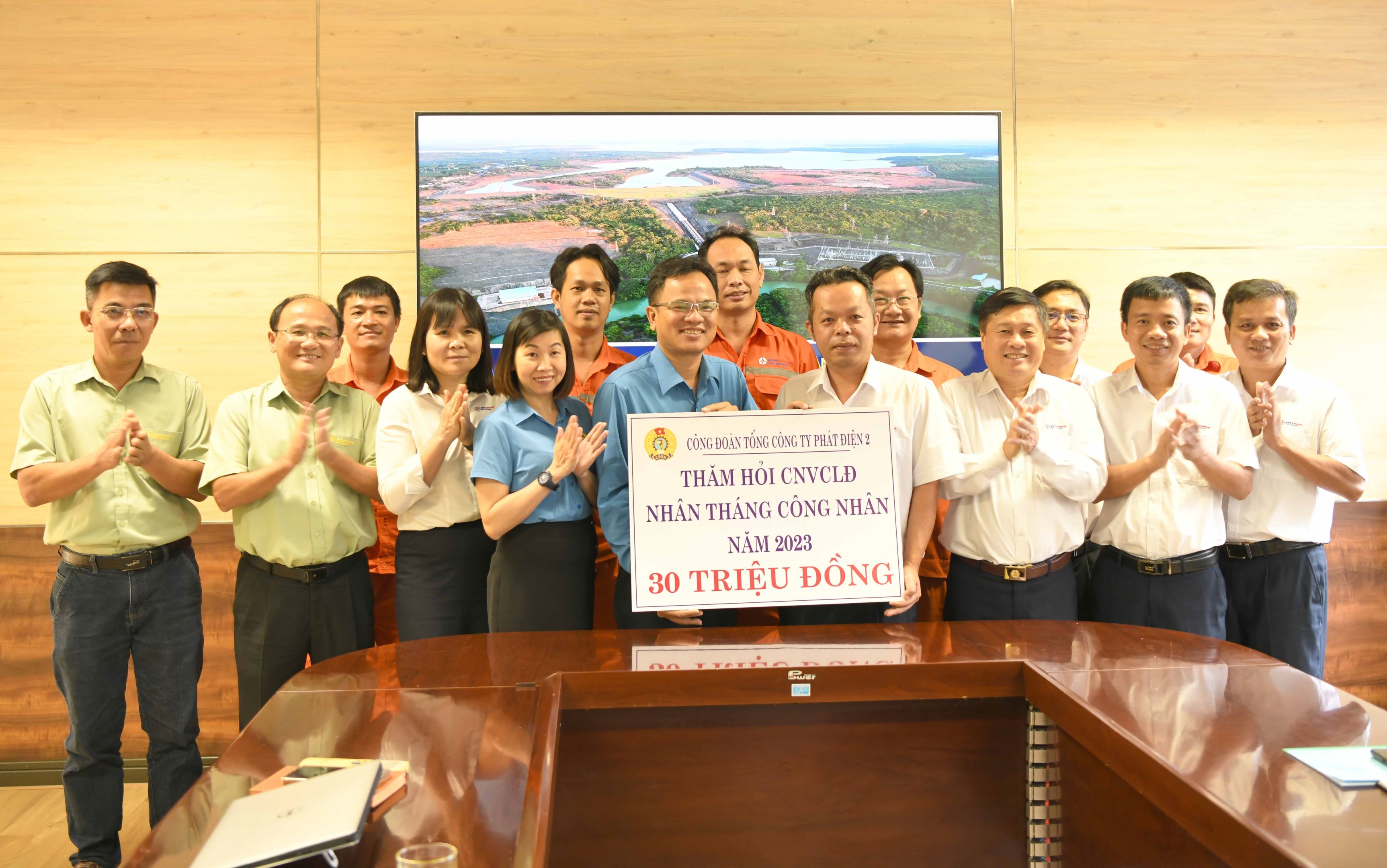 Trong khuôn khổ buổi làm việc, thay mặt Công đoàn Công đoàn EVNGENCO2, đồng chí Bùi Văn Thắng trao 30 triệu đồng cho Công đoàn TMP nhân dịp Tháng Công nhân./.