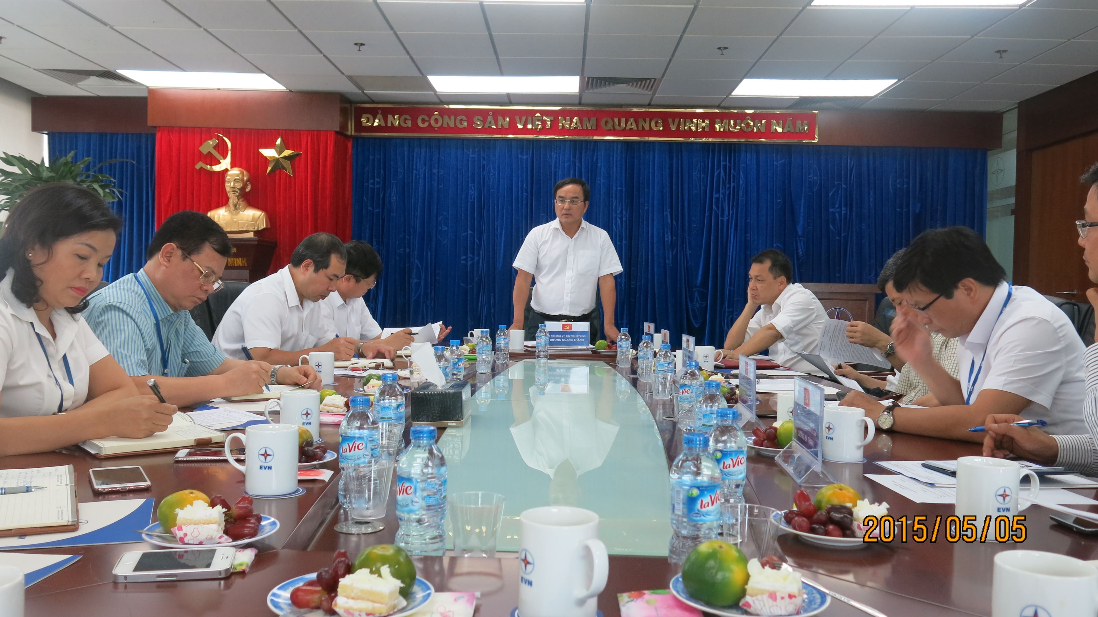 Phát biểu kết luận buổi làm việc, đồng chí Dương Quang Thành đã biểu dương tinh thần vượt qua khó khăn, đoàn kết, nỗ lực lao động sáng tạo của đội ngũ CNVCLĐ và cán bộ Công đoàn để góp phần vào việc hoàn thành xuất sắc nhiệm vụ trong thời gian qua của Tập đoàn Điện lực Việt Nam. Tập đoàn thực hiện tốt kế hoạch tái cơ cấu theo Quyết định số 1782 của Thủ tướng Chính phủ, quan hệ lao động trong Tập đoàn hài hòa, ổn định, không có đơn thư khiếu nại kéo dài. Ban Thường vụ Công đoàn đã phối hợp tốt với Tổng Giám đốc Tập đoàn tổ chức nhiều phong trào thiết thực trong CNVCLĐ, như các phong trào kỷ niệm 60 năm Ngày truyền thống ngành Điện lực Việt Nam…