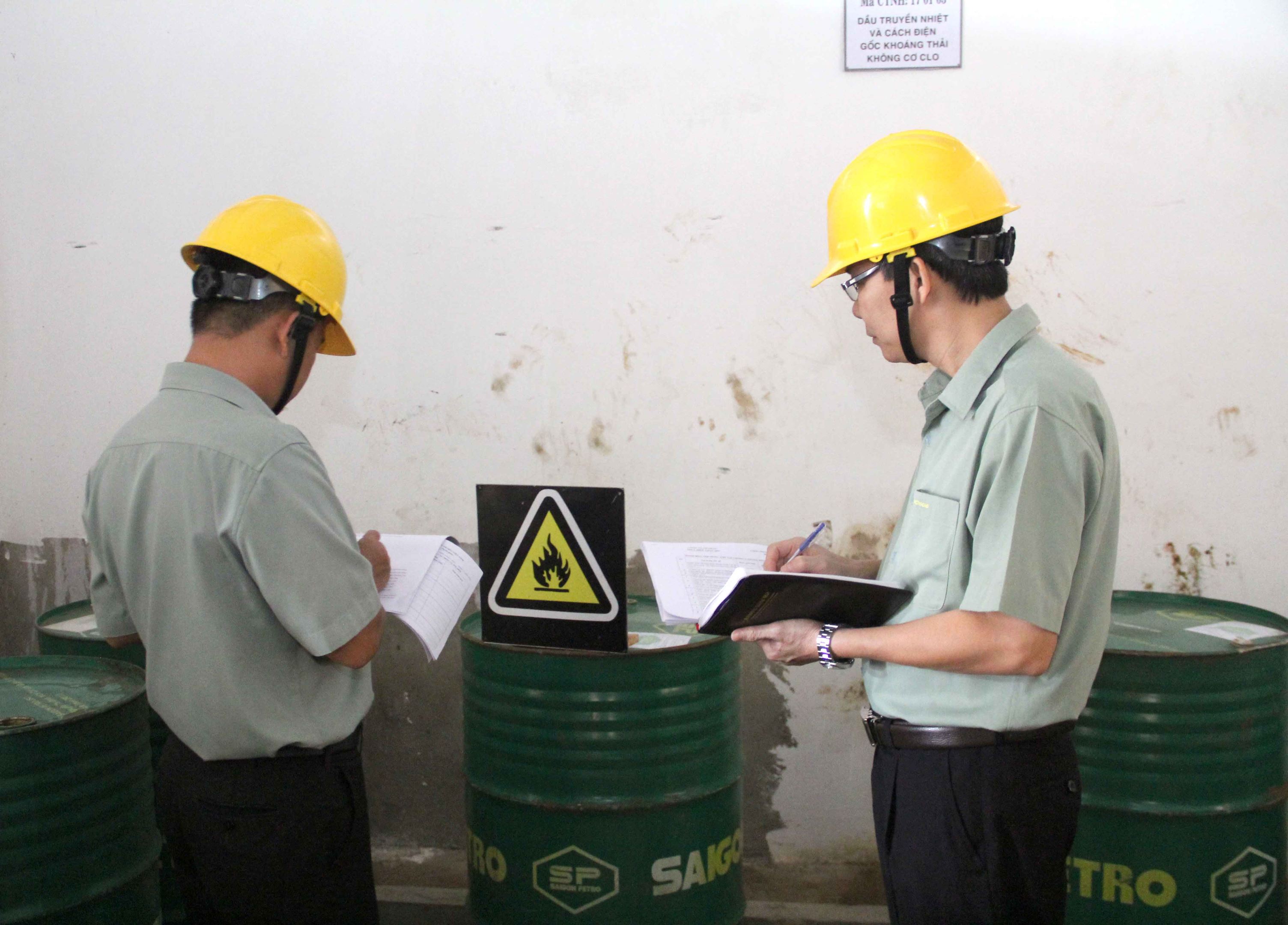 Đoàn công tác AT-VSLĐ chấm điểm tại kho công ty