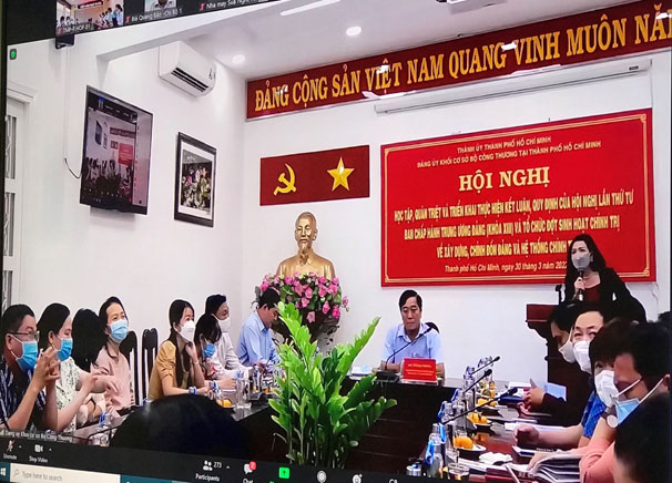 Các đại biểu tham dự Hội nghị tại đầu cầu Đảng ủy Khối cơ sở Bộ Công thương tại Thành phố Hồ Chí Minh.