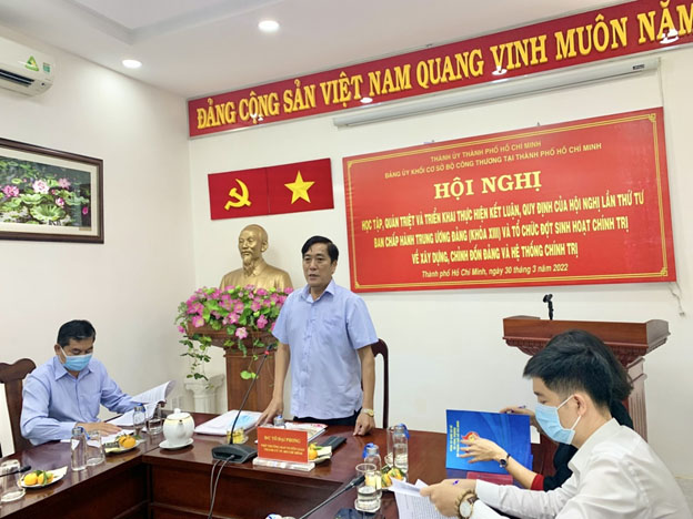 Tại hội nghị, đồng chí Tô Đại Phong, Phó Trưởng Ban Tuyên giáo Thành ủy đã triển khai những nội dung trọng tâm, cốt lõi của Hội nghị Trung ương 4 khóa XIII, cụ thể là Kết luận số 21-KL/TW, ngày 25/10/2021 “Về đẩy mạnh xây dựng, chỉnh đốn Đảng và hệ thống chính trị; kiên quyết ngăn chặn, đẩy lùi, xử lý nghiêm cán bộ, đảng viên suy thoái về tư tưởng chính trị, đạo đức lối sống, biểu hiện “tự diễn biến”, ‘tự chuyển hóa”