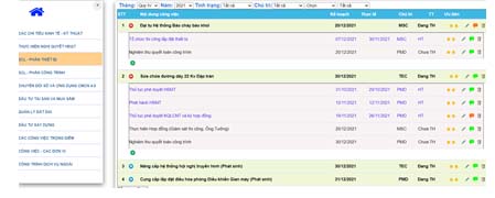 - Quản lý công việc các đơn vị đã đăng ký thực hiện trong tháng/quý/năm. Trong đó có phân loại công việc theo: loại hình công việc, mức độ quan trọng, đơn vị chủ trì, đơn vị phối hợp. Các công việc được quản lý tập trung theo mô hình công việc cha/con. Quản lý chặt chẽ tiến độ thực hiện, cảnh báo hoàn thành/quá hạn bằng màu sắc. Cho phép tương tác giữa các cá nhân có liên quan qua memo ghi nhận các comment.