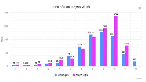 Giao diện thông tin về lưu lượng nước về hồ qua từng tháng