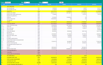 chi phí và lợi nhuận theo tháng/quý/năm của từng nhà máy/công ty con/hợp nhất