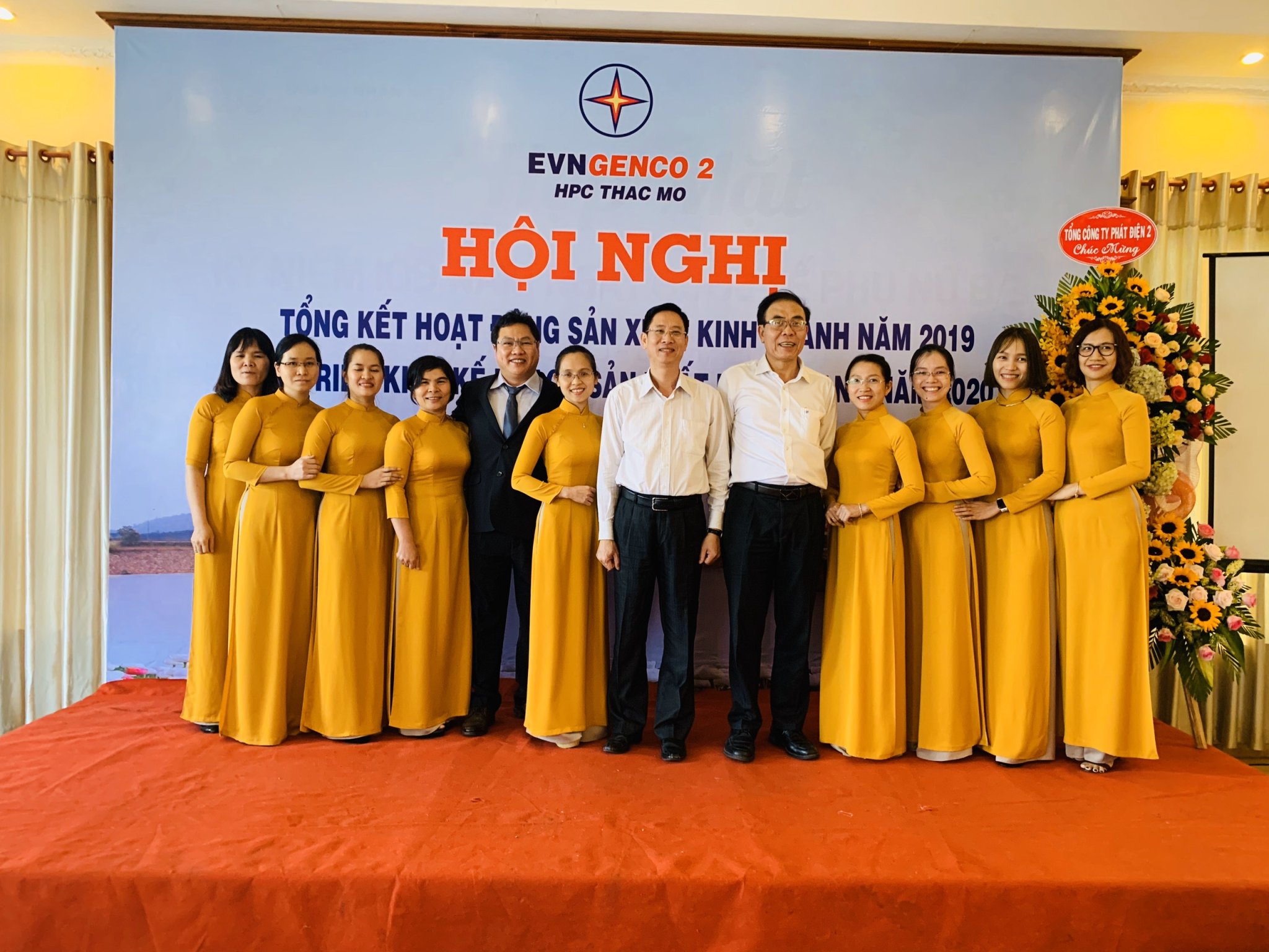 Lãnh đạo Công ty tặng hoa cho các Đại biểu nguyên là Lãnh đạo Công ty qua các thời kỳ và Ban Quản lý Dự án Công trình Thủy điện Thác Mơ về dự họp mặt truyền thống Công ty năm 2020