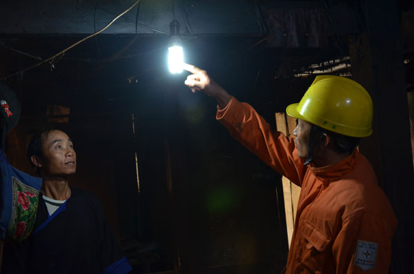 Thợ điện vốn đã không còn là khách lạ đối với dân bản, nên chúng tôi bước vào nhà mà ông cũng chẳng buồn đứng lên. Lúc này, ông chủ tịch xã Lò Văn Tiến lên tiếng giục gia đình bật điện cho sáng thì chiếc đèn compact bé xíu, treo giữa nhà mới tỏa ra thứ ánh sáng nhàn nhạt, mất hồi lâu mới nhìn rõ mặt người.