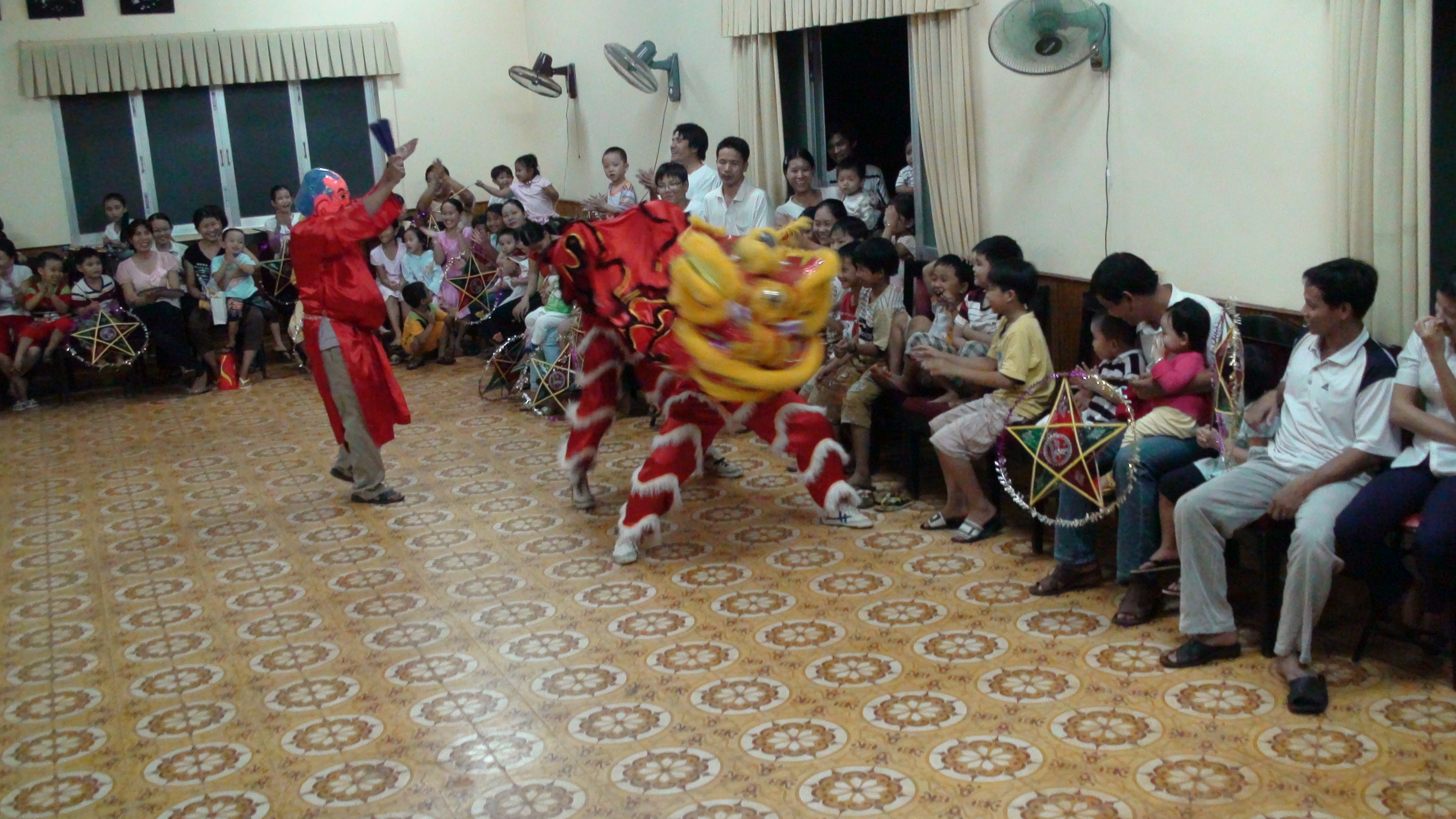 Sau khi được nhận quà, đèn lồng và xem múa lân trong hội trường, các cháu còn được các cô chú trong đội lân tổ chức rước đèn xung quanh khu cư xá dưới ánh trăng rằm. Một không khí vui tươi và những nụ cười rạng rỡ hiện rõ trên từng khuôn mặt của các cháu.