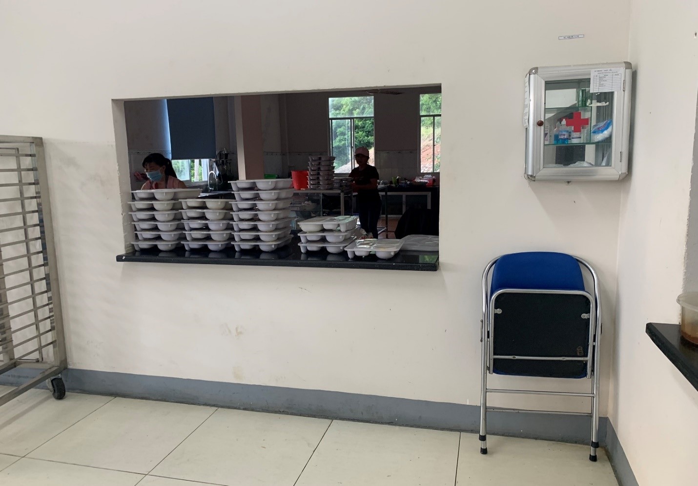 Các nhân viên Nhà ăn đang chuẩn bị các suất ăn cho các Điều hành viên