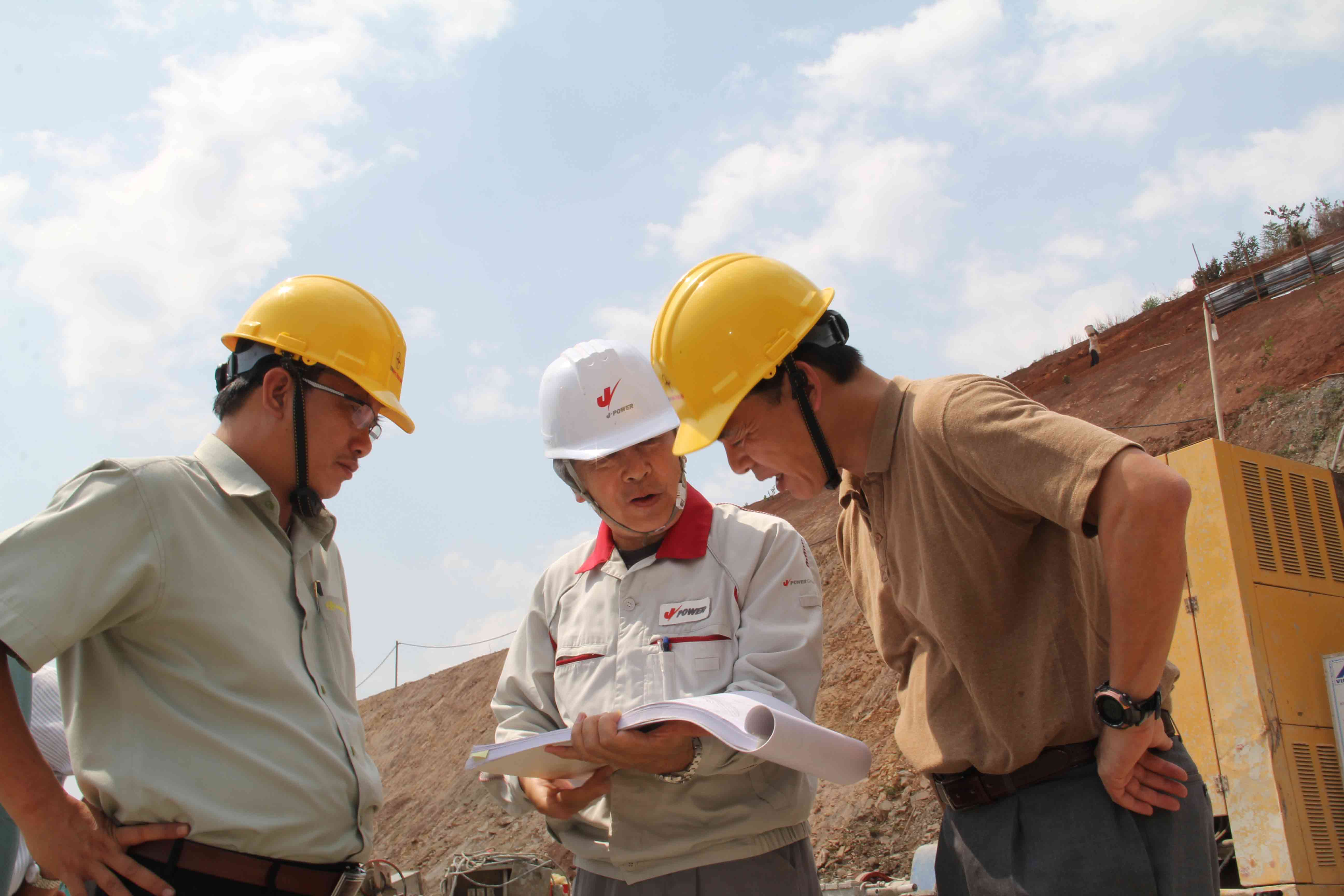 Tại công trường, ông Mutsuya Mori trao đổi nhanh với Ban quản lý dự án về việc đẩy nhanh tiến độ thi công, đảm bảo hoàn thành dự án theo đúng tiến độ, đảm bảo công tác quản lý kỹ thuật công trình, thực hiện tốt công tác giải ngân...