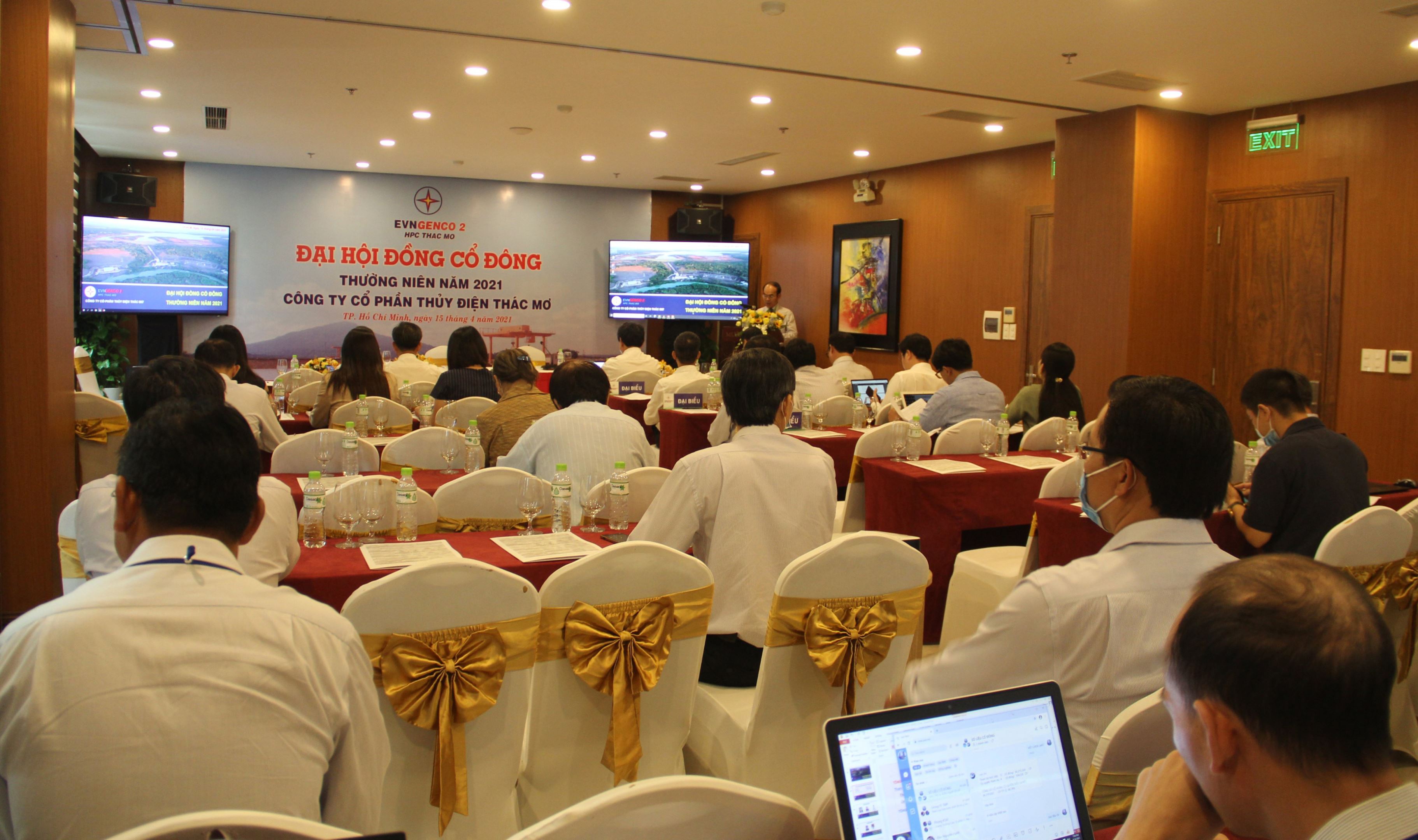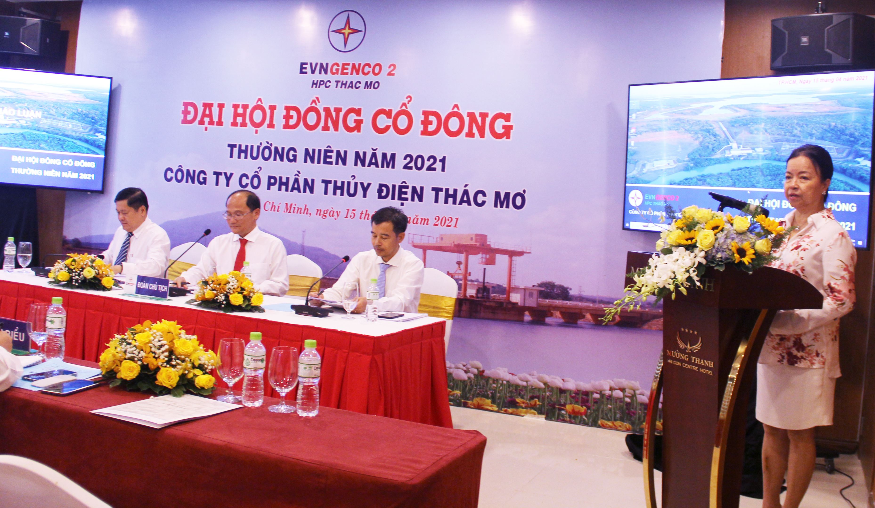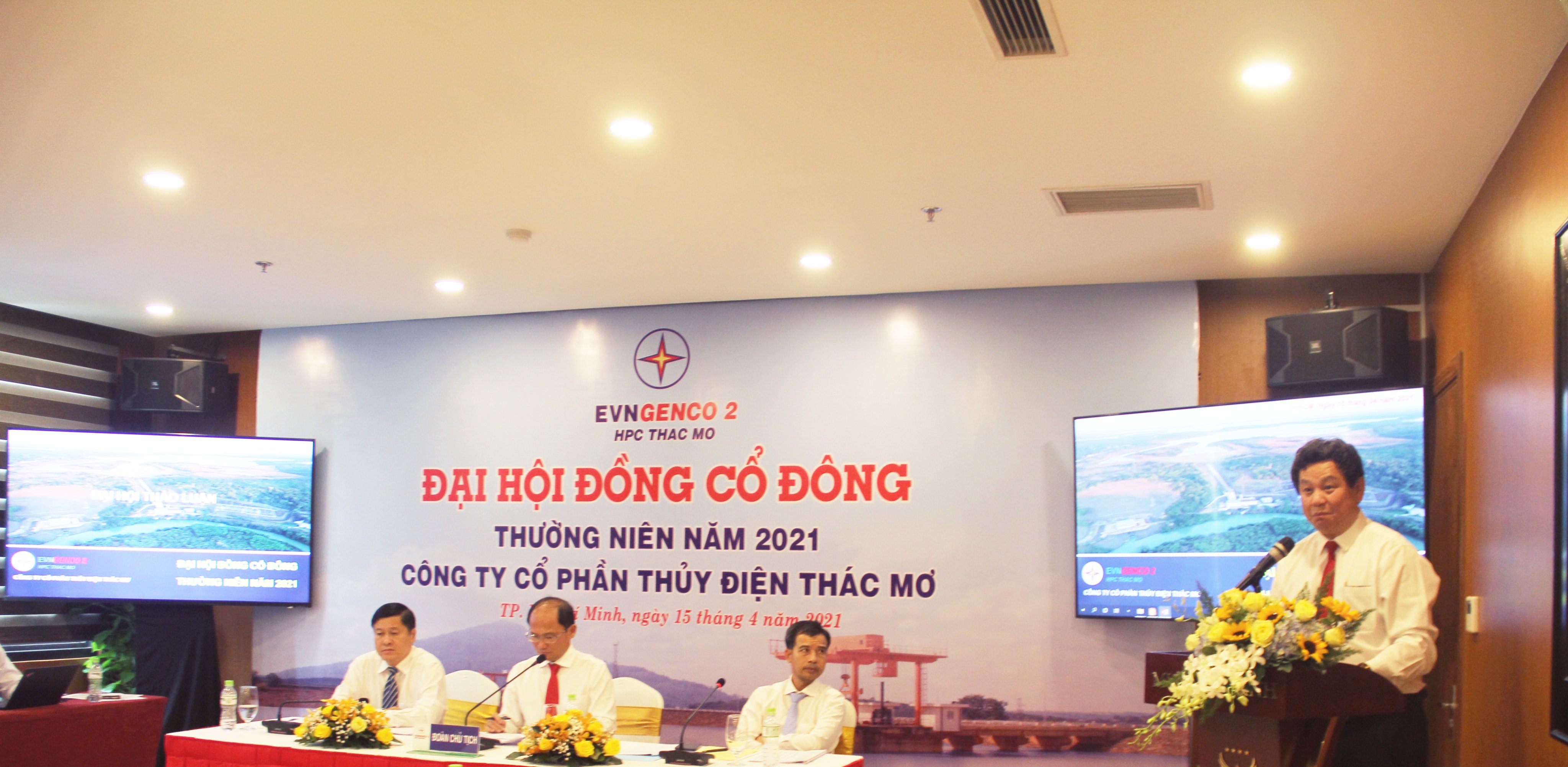 Đại hội đã nghe ông Nguyễn Hùng Lượng – Phó Tổng giám đốc Công ty báo cáo hoạt động sản xuất kinh doanh năm 2020 và kế hoạch sản xuất kinh doanh năm 2021; Năm 2020, tình hình thuỷ văn không thuận lợi, lưu lượng nước về trung bình là 67,64 m3/s thấp hơn trung bình cùng kỳ nhiều năm (113,95 m3/s). Sản lượng Công ty mẹ năm 2020 là 486 triệu kWh đạt 77% kế hoạch năm 2020, giảm 23% so với cùng kỳ năm 2019. Xác định năm 2020, tình hình thủy văn bất lợi, Công ty đã chủ động tính toán, lập kế hoạch khai thác tối ưu hồ chứa, theo dõi diễn biến tình hình thời tiết, bám sát giá thị trường để đưa ra chiến lược chào giá điện phù hợp mang lại doanh thu và lợi nhuận cao nhất. Năm 2020 tổng doanh thu của Công ty đạt được 413,97 tỷ đồng, Công ty đã hoàn thành tốt nghĩa vụ nộp ngân sách nhà nước hơn 191 tỷ đồng.