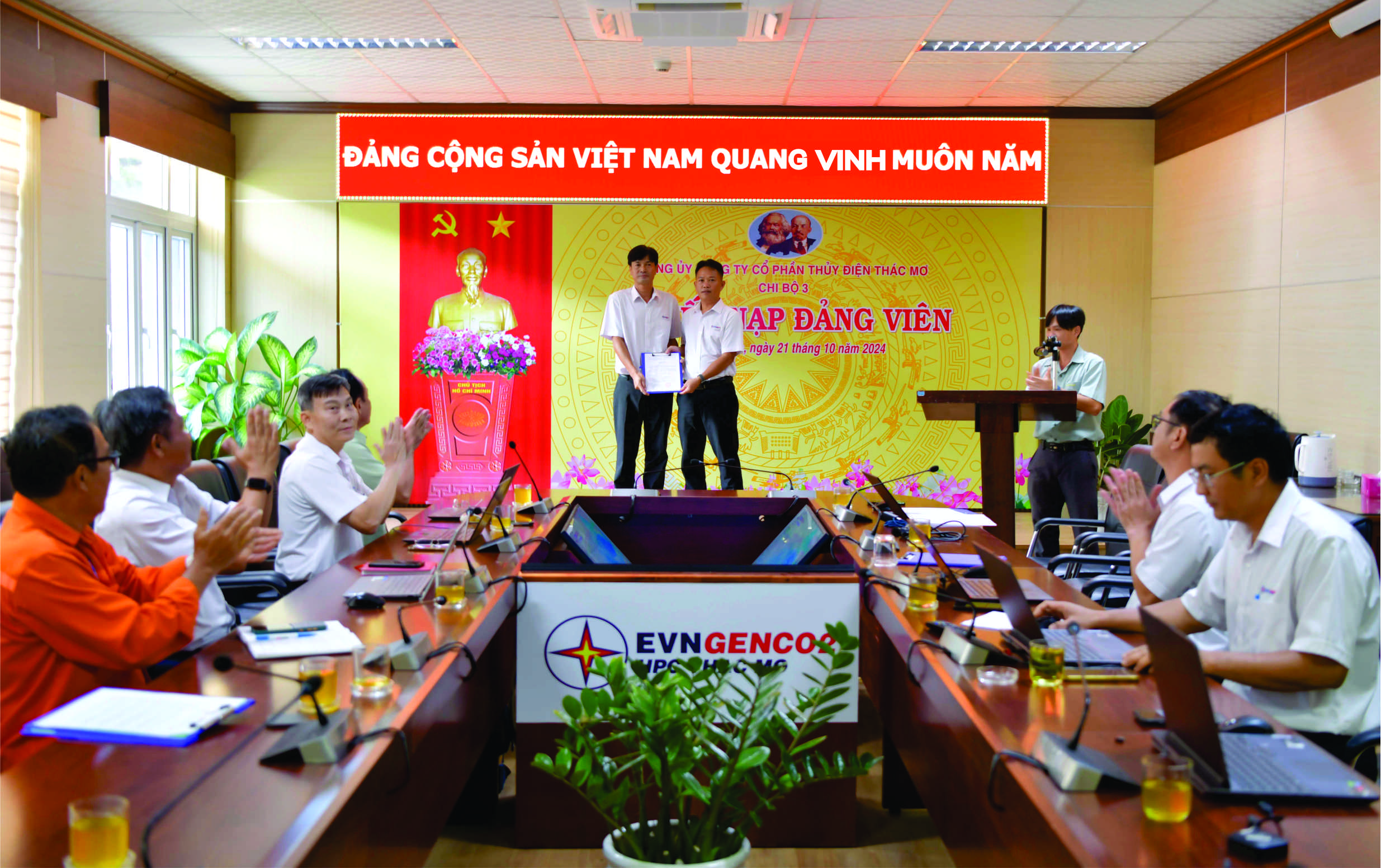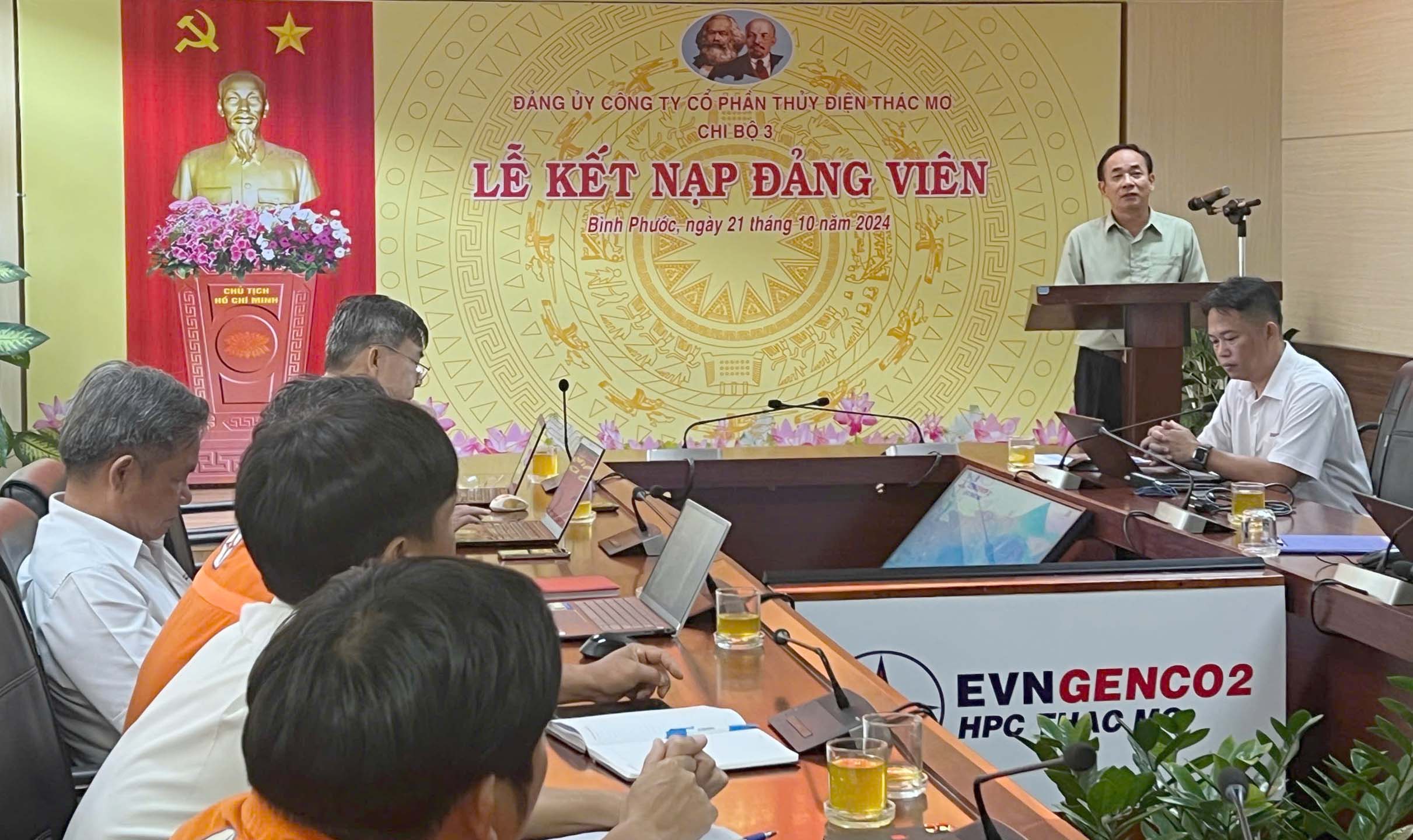 Thực hiện quyết định số 2075 – QĐ/ĐU ngày 30/9/2024 của Đảng ủy Tổng công ty Phát điện 2, được sự nhất trí của Đảng ủy Công ty Cổ phần Thủy điện Thác Mơ, hôm nay ngày 21 tháng 10 năm 2024 Chi bộ 3 tiến hành tổ chức lễ kết nạp Đảng viên cho quần chúng Bùi Thanh Hải.