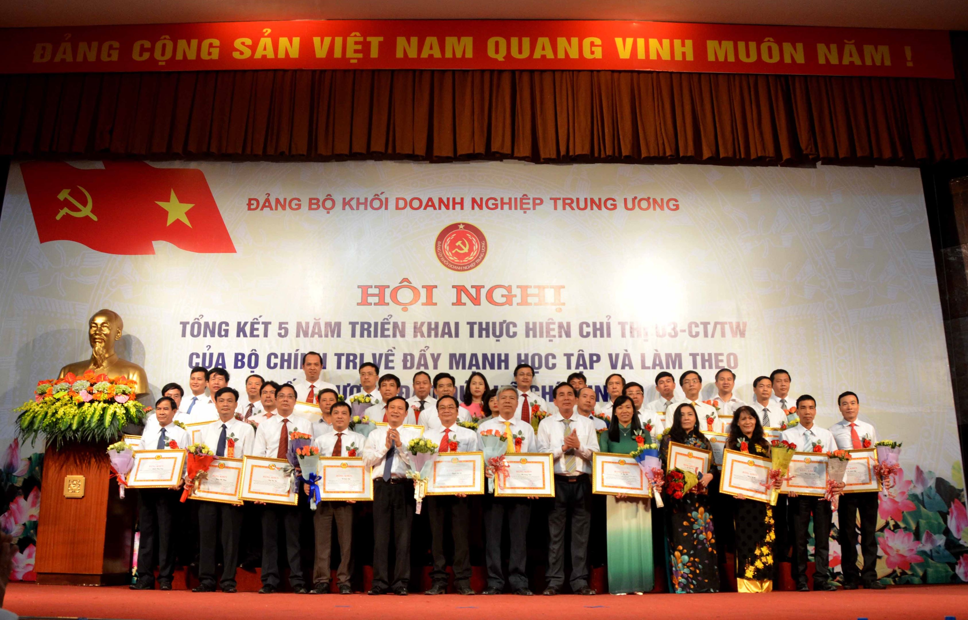 Nhân dịp này, Đảng ủy Khối doanh nghiệp Trung ương đã tặng Bằng khen cho 80 tập thể, 92 cá nhân tiêu biểu trong học tập và làm theo tấm gương đạo đức Hồ Chí Minh 5 năm (2011 - 2015).