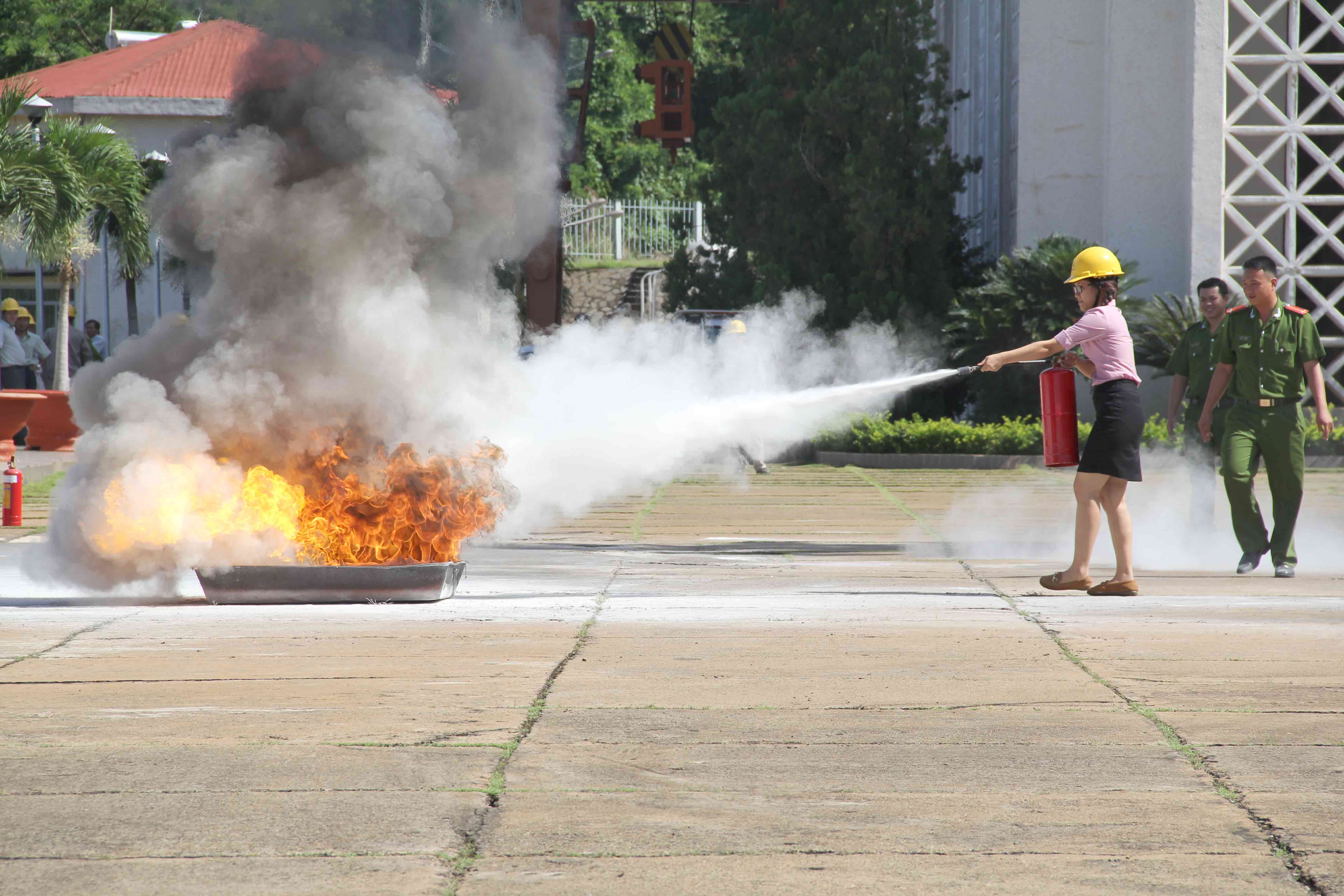 Cùng với sự hướng dẫn kỹ thuật của cán bộ chuyên trách Phòng Cảnh sát PCCC & CHCN – Công an tỉnh Bình Phước, CBCNV được hướng dẫn và sử dụng thuần thục bình CO2, bình MFZ4 dập tắt đám cháy xăng dầu; Đội xung kích dùng hệ thống nước PCCC diễn tập dập tắt đám cháy rừng cây cơ đồi, cứu hộ người bị nạn trong đám cháy... Buổi diễn tập đã thành công với sự phối hợp nhịp nhàng, xử lý hiệu quả, đảm bảo kỹ thuật an toàn.
