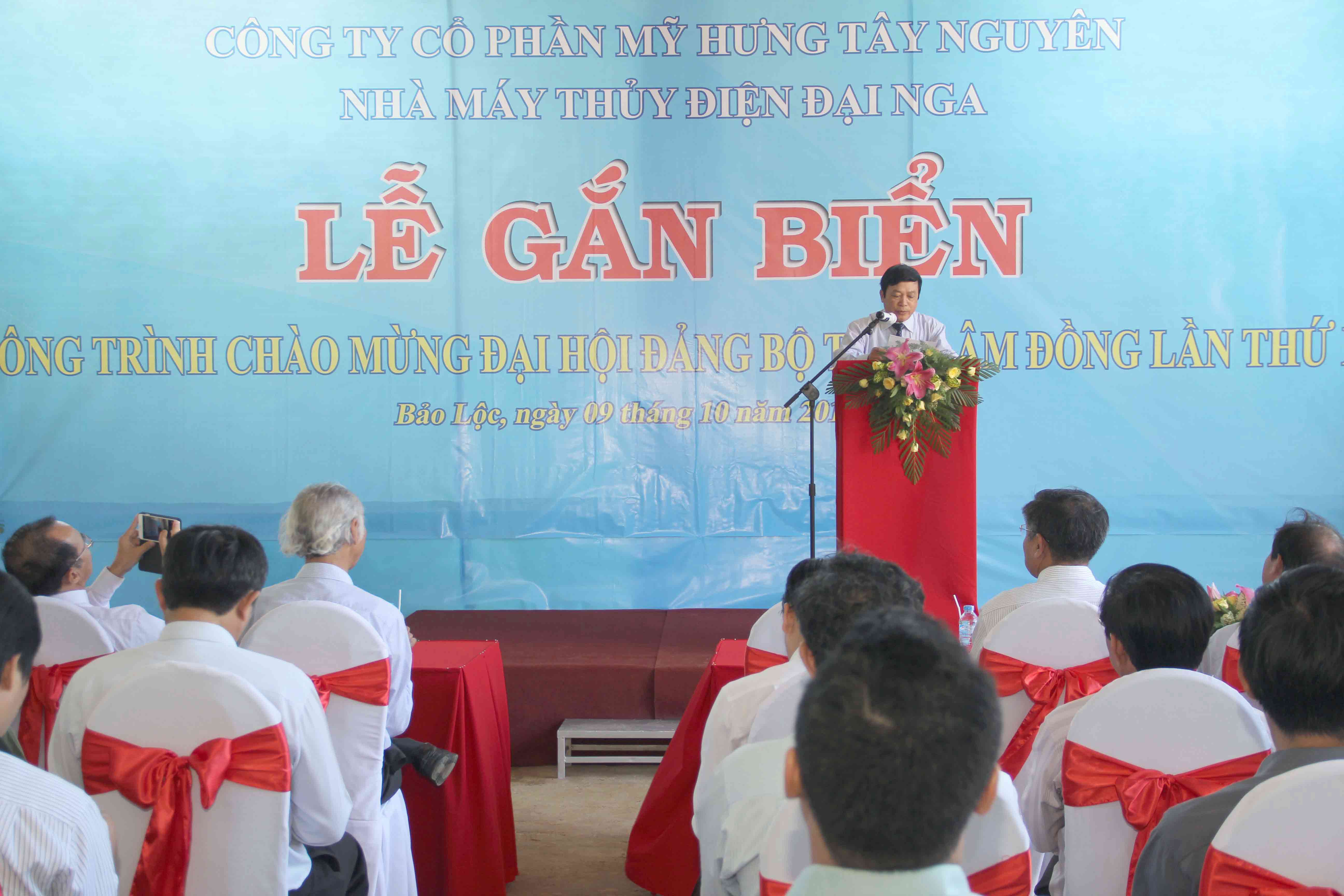 Đ/C Phó Bí thư Tỉnh ủy- Chủ tịch UBND tỉnh Lâm Đồng Đoàn Văn Việt đọc diễn văn tại Lễ gắn biển Công trình