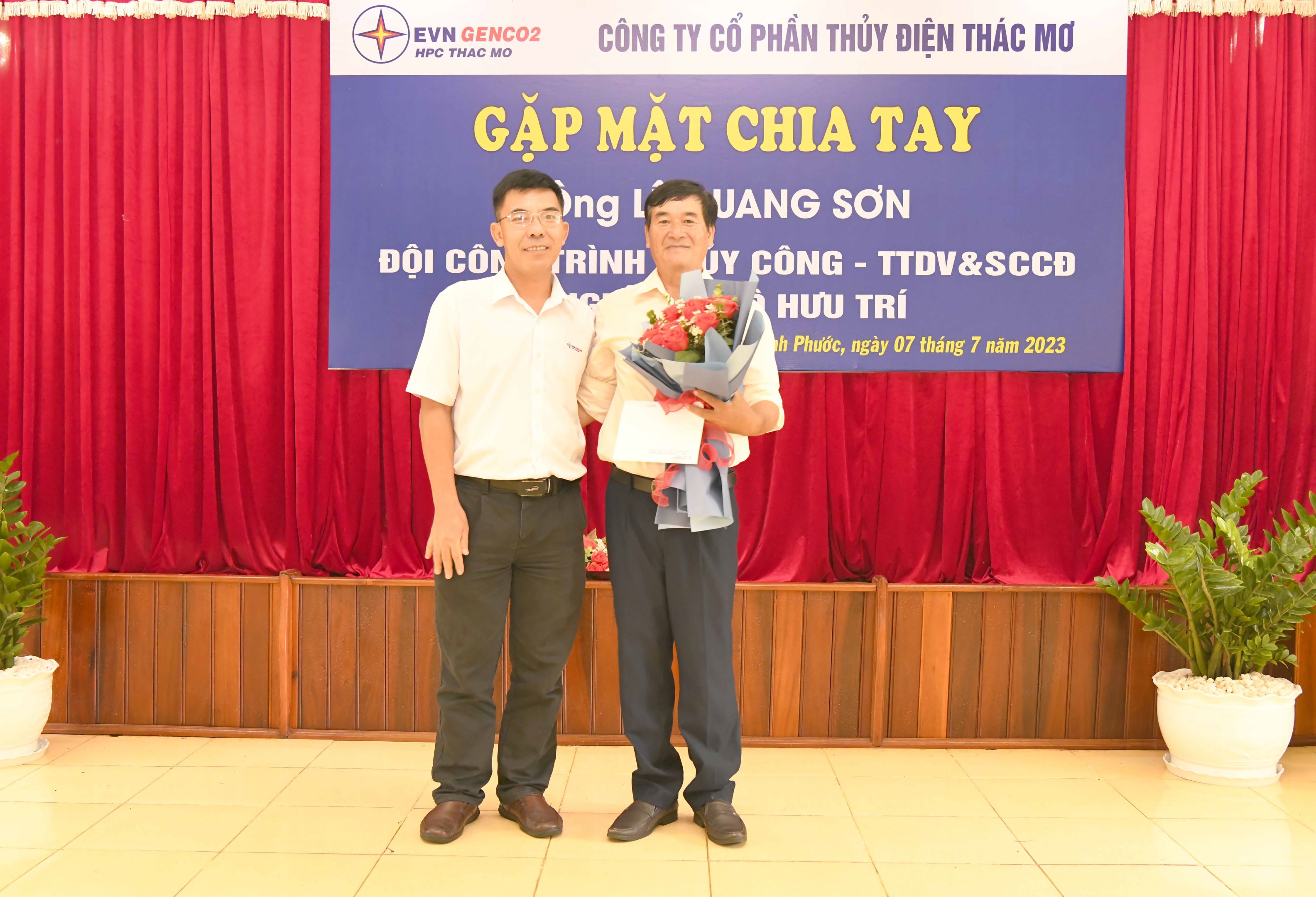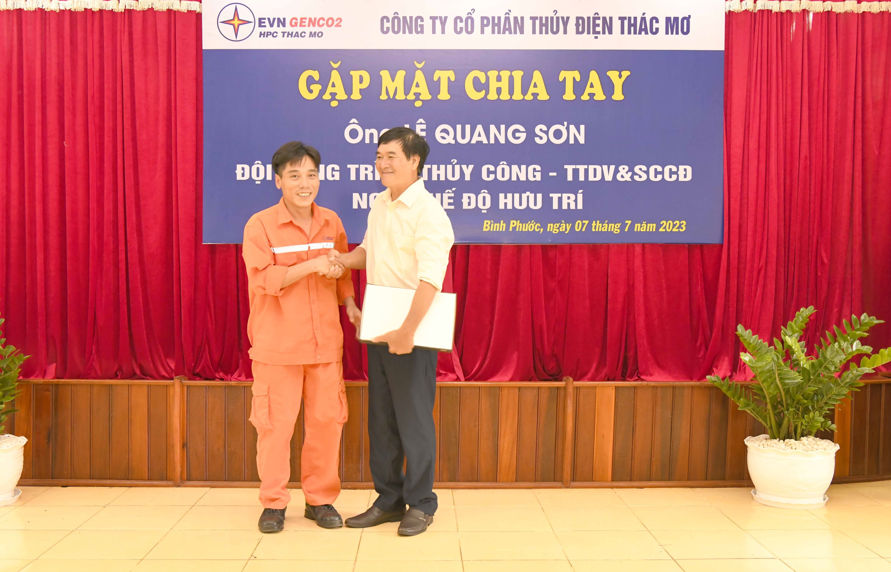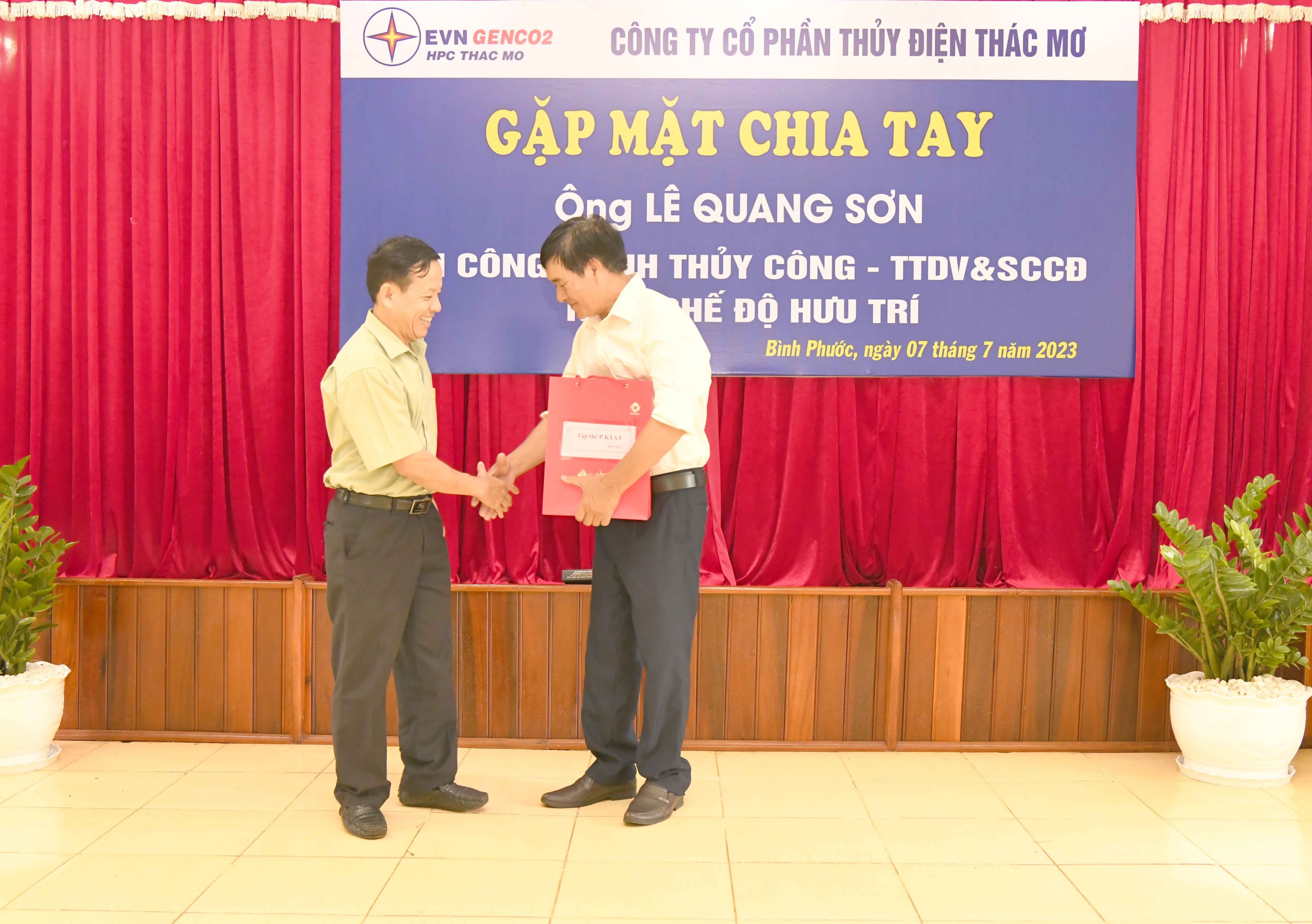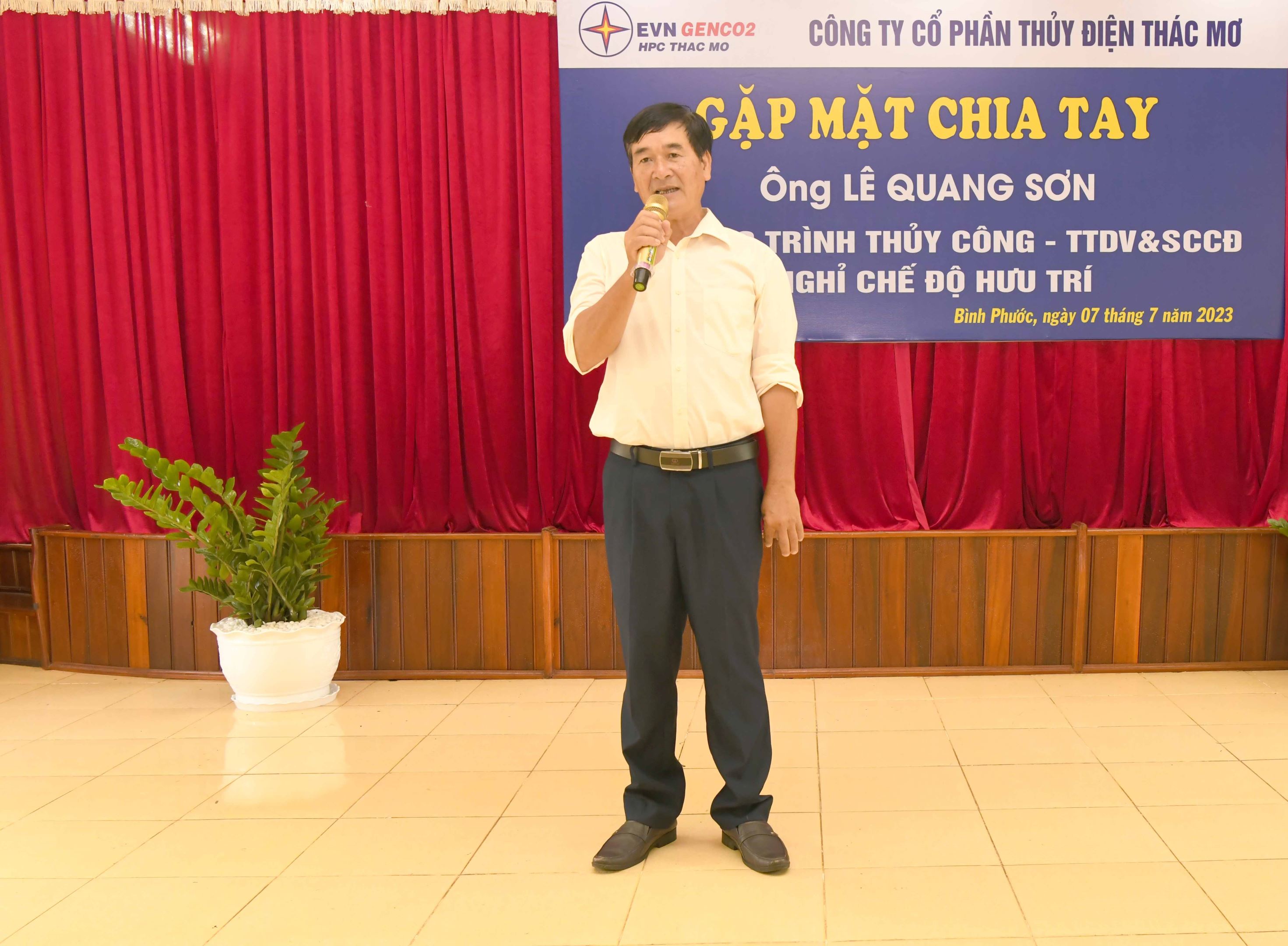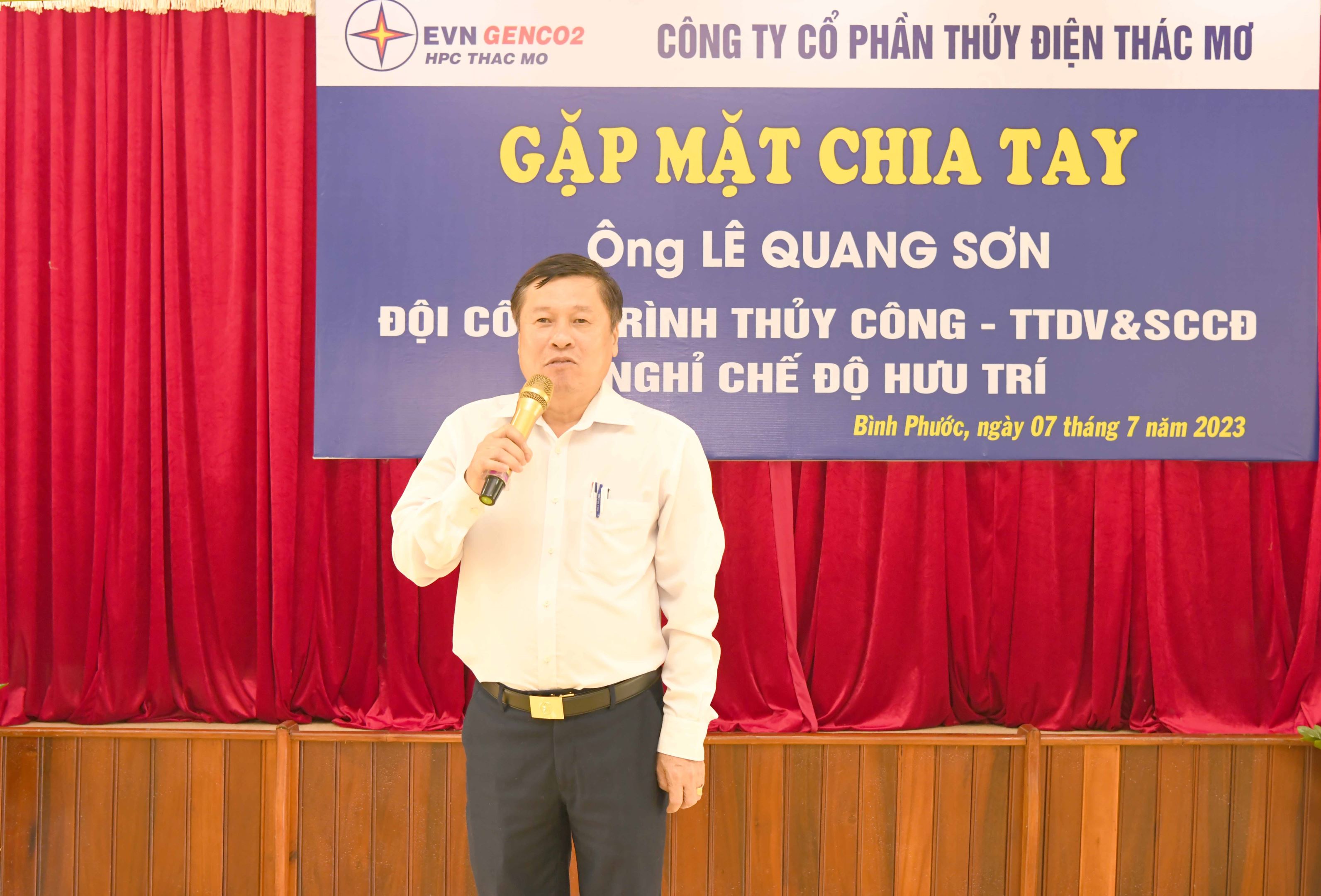 Tại buổi gặp mặt, ông Nguyễn Văn Non phát biểu chúc mừng ông Lê Quang Sơn hoàn thành nhiệm vụ, về nghỉ hưởng chế độ hưu trí, nhân dịp này ông cũng gửi lời cảm ơn gia đình đã tạo điều kiện tốt để ông Lê Quang Sơn luôn hoàn thành tốt mọi công việc Công ty giao phó. Thay mặt TMP, Tổng Giám đốc chúc ông Lê Quang Sơn mạnh khỏe, vui vẻ, hạnh phúc bên gia đình và con cháu, tiếp tục cống hiến cho gia đình và xã hội những việc mình có thể làm được và mong muốn Ông Lê Quang Sơn tiếp tục giữ mối liên lạc với TMP.