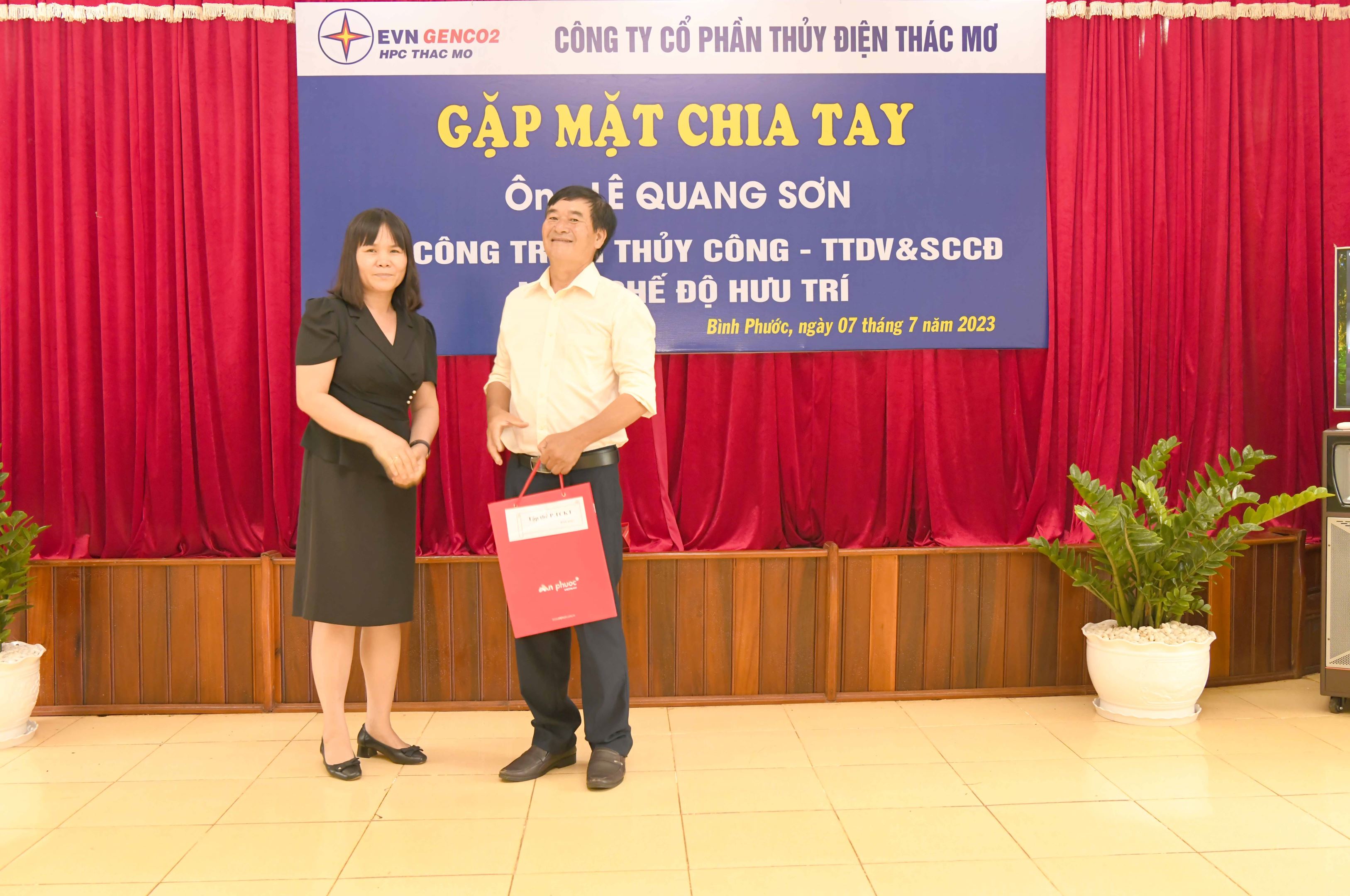 Ông Lê Ái Tưởng đại diện Đội Thiết bị Điện tặng quà kỷ niệm