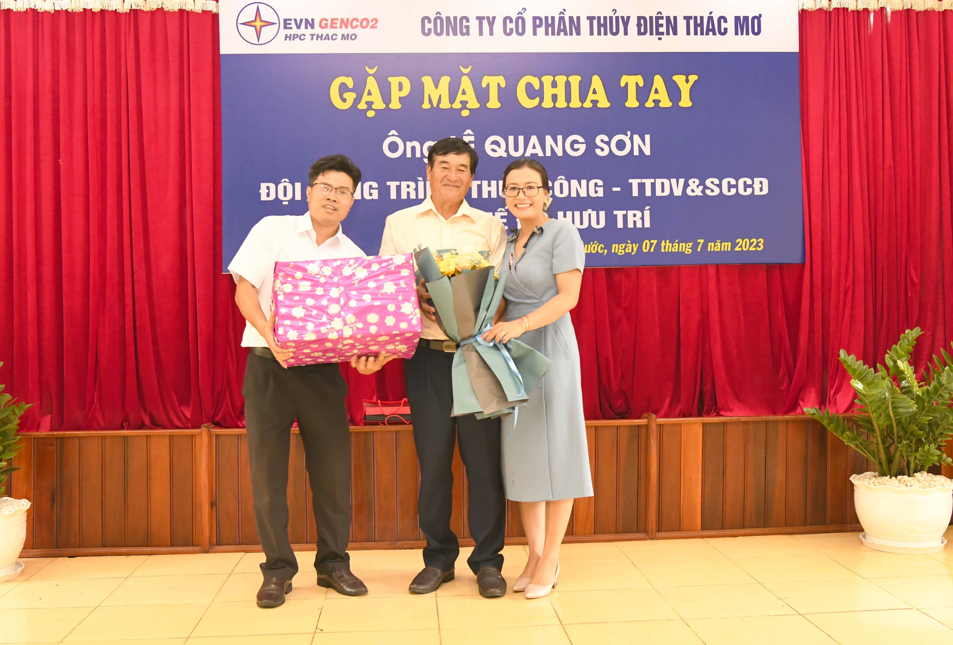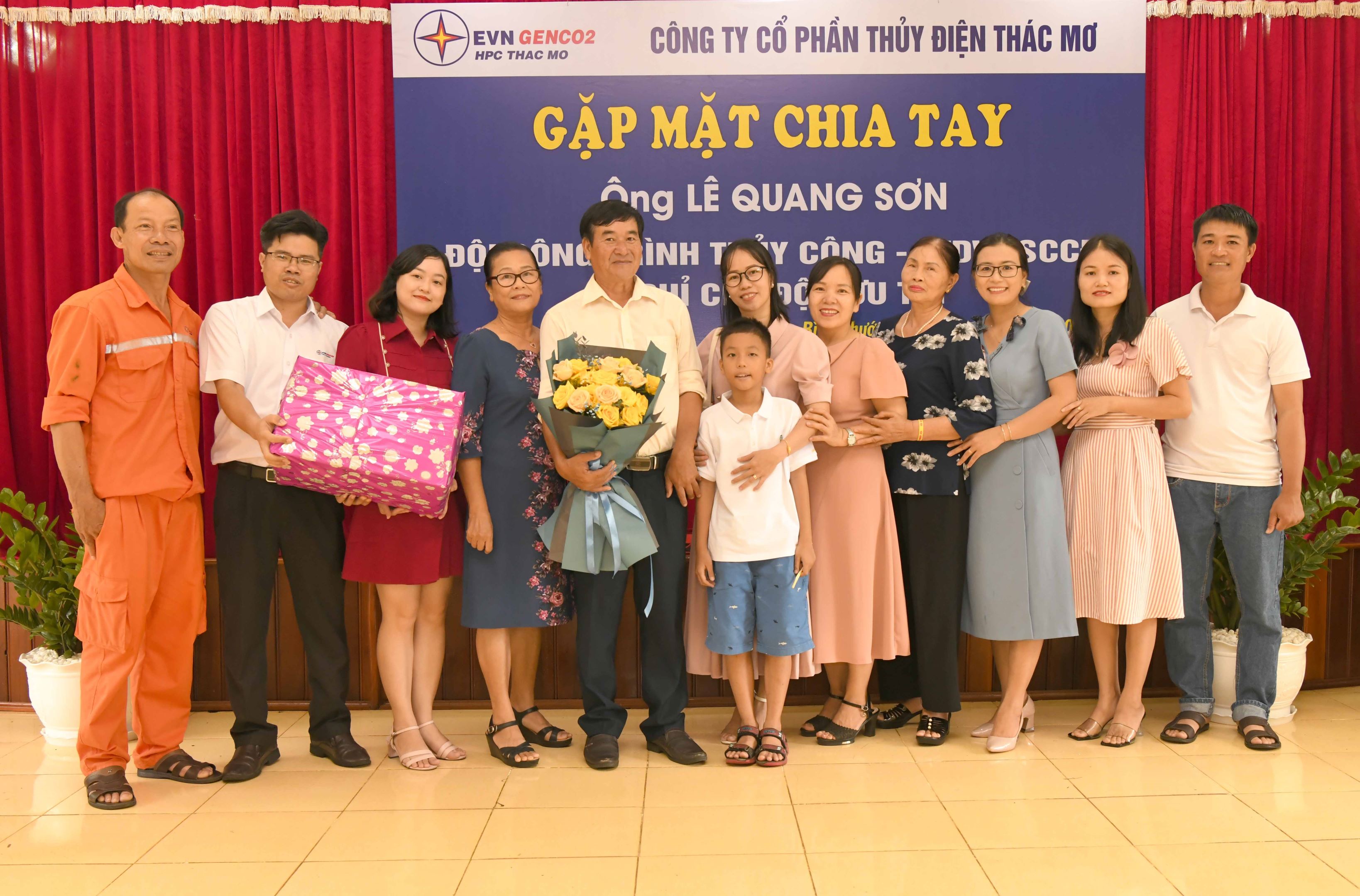 Tới dự buổi gặp mặt có ông Huỳnh Văn khánh – CT.HĐQT, ông Nguyễn Văn Non – Tổng giám đốc, Ban Tổng giám đốc, Trưởng các đơn vị, toàn thể CBCNV Trung tâm Dịch vụ & Sửa chữa Cơ điện và gia đình ông Lê Quang Sơn.
