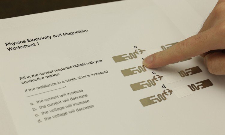 "Giấy thông minh" có gắn chip hỗ trợ sinh viên làm bài thi trắc nghiệm và gửi đáp án nhanh chóng đến giáo viên. (Ảnh: Quartz).