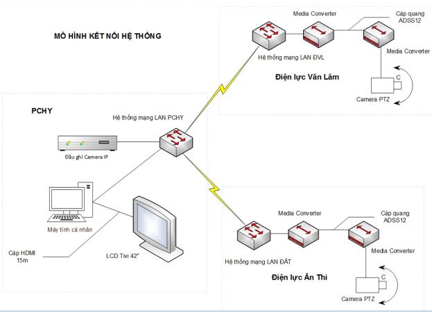 Do hiện trường có mặt bằng rộng, vị trí cột điện đặt ở nhiều nơi với nhiều góc độ quan sát do đó để quan sát hết khu vực trong hiện trường phải sử dụng camera IP có tính năng tự động điều chỉnh góc quan sát (góc quay 3600, điều chỉnh lên và xuống) và tự động điều chỉnh Zoom hình ảnh từ xa.