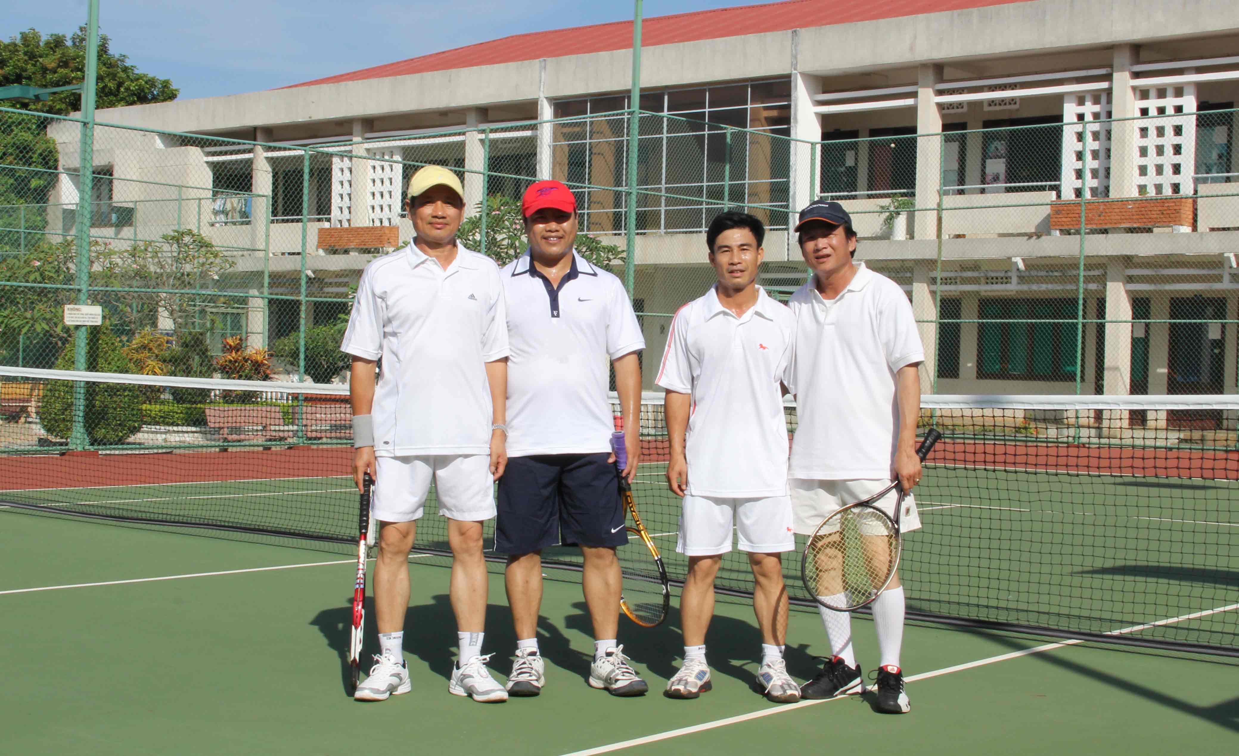 (người thứ nhất bên trái) trao giải cho các VĐV tennis