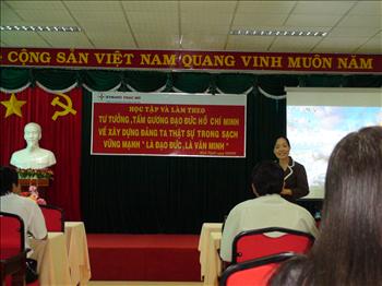 Thực hiện kế hoạch công tác của chi bộ Công ty cổ phần thủy điện Thác Mơ năm 2010 về việc tiếp tục triển khai quán triệt nội dung Cuộc vận động “Học tập và làm theo tấm gương đạo đức Hồ Chí Minh”. Ngày 09/6/2010 Công ty tổ chức buổi học tập quán triệt và triển khai thực hiện Cuộc vận động “Học tập và làm theo tấm gương đạo đức Hồ Chí Minh” năm 2010 với chủ đề xây dựng Đảng ta thật sự trong sạch, vững mạnh “ là đạo đức, là văn minh” cho toàn thể cán bộ, đảng viên và công nhân viên công ty.Tại buổi thảo luận chuyên đề, thạc sĩ Vũ Thị Mai Oanh (Giảng viên Trường đào tạo cán bộ TP.HCM) đã nêu tấm gương Chủ tịch Hồ Chí Minh, vị lãnh tụ kính yêu của dân tộc ta, đã hiến dâng tất cả tình cảm, trí tuệ và cuộc đời cho sự nghiệp cách mạng của Đảng và nhân dân ta. Người đã để lại tài sản vô giá cho dân tộc ta đó là Tư tưởng và tấm gương đạo đức trong sáng, mẫu mực, cao đẹp, kết tinh những giá trị truyền thống của dân tộc, của nhân loại và thời đại. Trong không khí thân mật, Giảng viên cùng toàn thể CBCNV công ty đã sôi nổi trao đổi các đề tài về tấm gương đạo đức của Người về nhân cách người lao động trong thời kỳ hội nhập WTO của nước ta hiện nay.