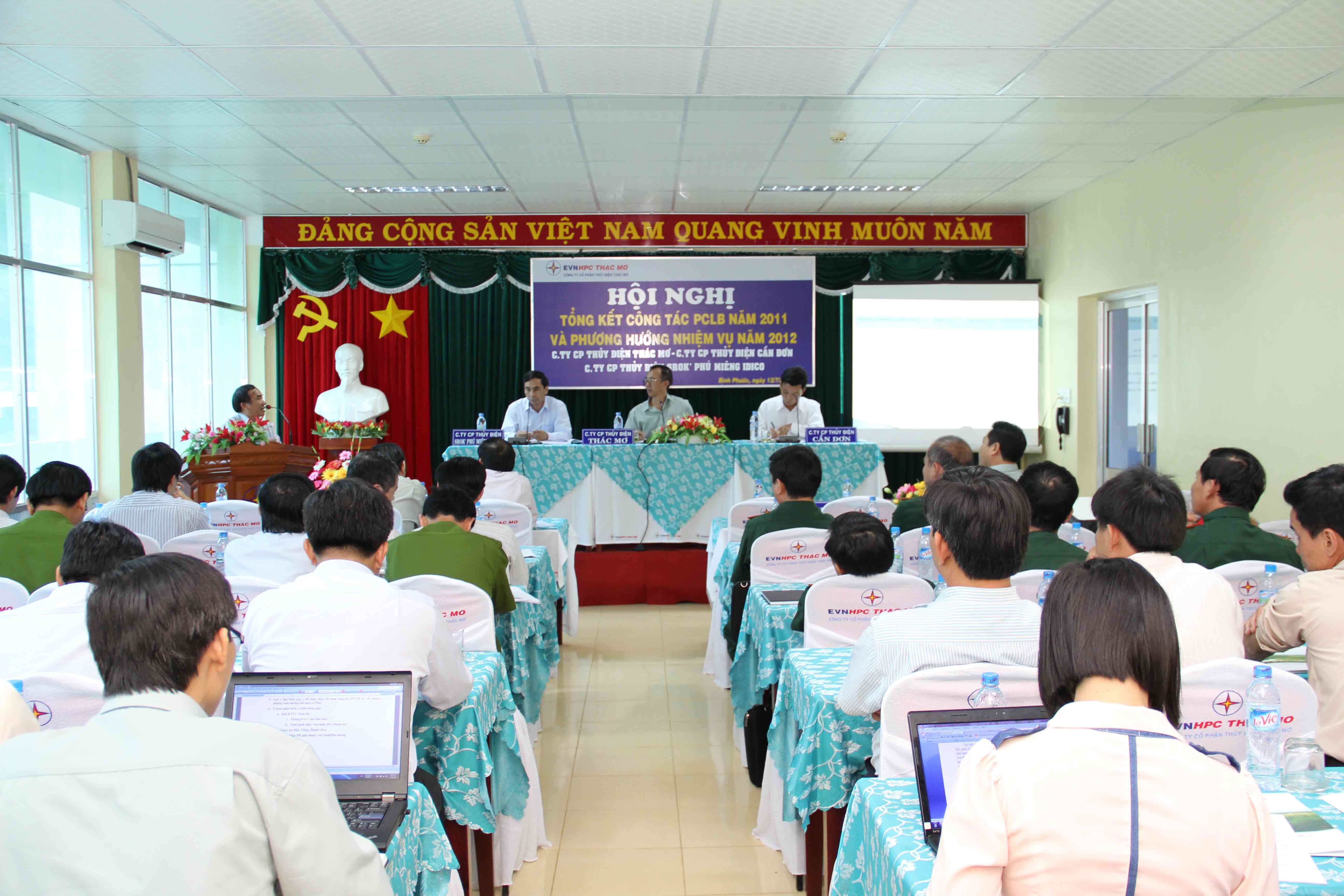 Chủ trì Hội nghị có ông Nguyễn Thanh phú – CTHĐQT - Tổng giám đốc Công ty cổ phần thủy điện Thác Mơ, ông Mai Ngọc Hoàng – Tổng Giám đốc Công ty cổ phần Thủy điện Cần Đơn, ông Nguyễn Thanh Hoài- Phó Tổng Giám đốc Công ty cổ phần thủy điện Srock Phú Miêng. Về dự Hội nghị còn có Công ty HHMTV khai thác thủy lợi Dầu Tiếng - Phước Hòa, BCH PCLB TP.HCM, BCH PCLB tỉnh Bình Dương, BCH PCLB Tỉnh Bình Phước, BCH quân sự tỉnh Bình Phước, Công an tỉnh Bình Phước, Binh đoàn 16, Công an thị xã Phước Long, BCH quân sự thị xã Phước Long, UBND phường Thác Mơ, UBND phường Sơn Giang, BCH PCLB huyện Bù Gia Mập. Công an huyện Bù Gia Mập, UBND xã Long Bình, BCH PCLB huyện Hơn Quản, UBND xã Thanh An, UBND xã Tân Hưng, UBND xã Long Hà, Đài Phát thanh truyền hình Bình Phước