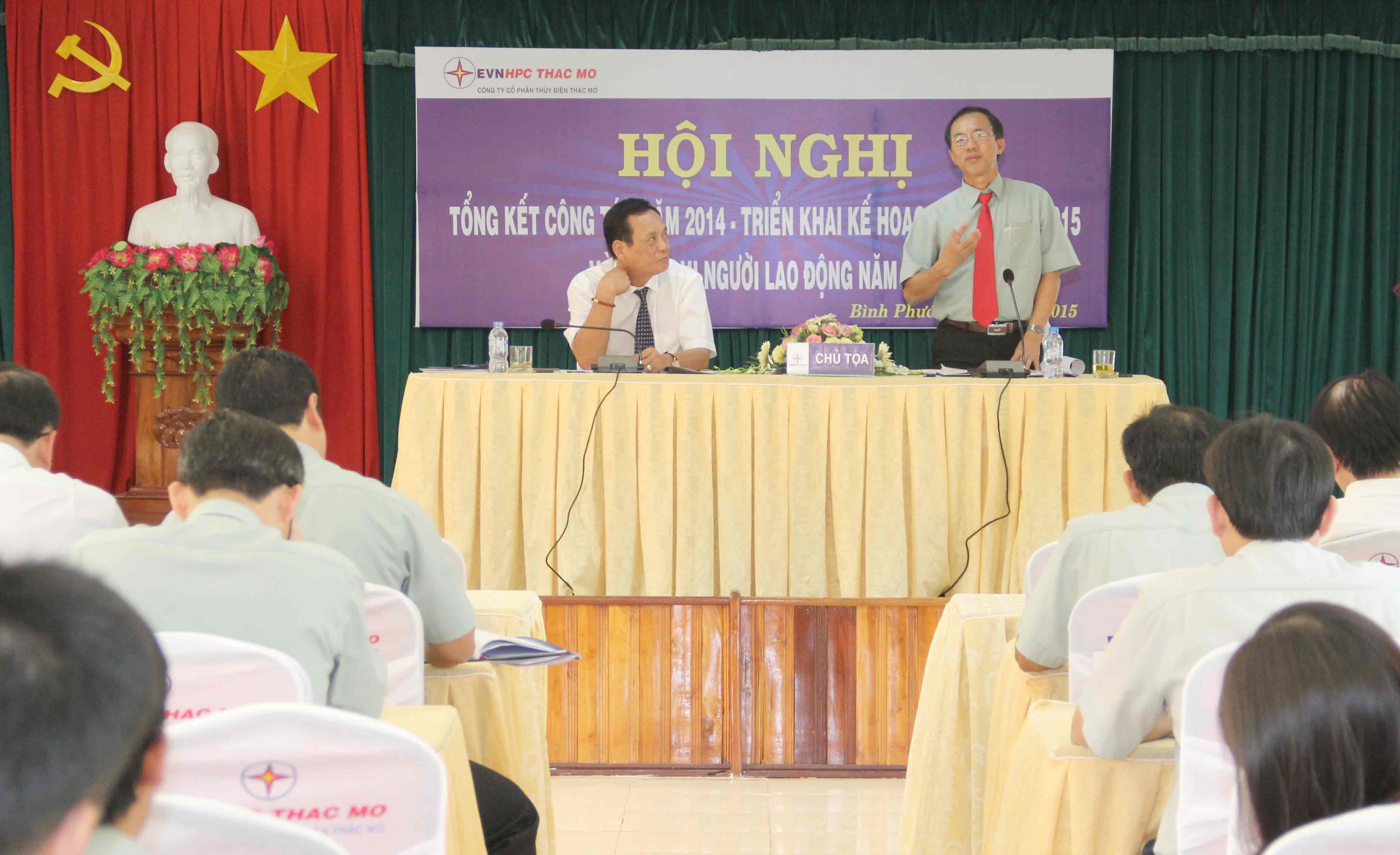 Ông Lê Minh Tuấn - Phó Tổng Giám đốc Công ty đã báo cáo kết quả SXKD năm 2014 và triển khai kế hoạch năm 2015 trước Hội nghị; nhìn chung, năm 2014 tình hình thủy văn đã diễn biến thuận lợi, lưu lượng nước về trung bình cao hơn 18,7% so với năm 2013 nên sản lượng điện sản xuất năm 2014 đạt 116,7% kế hoạch năm 2014. Các chỉ tiêu kinh tế kỹ thuật đều đạt và vượt chỉ tiêu kế hoạch đề ra cụ thể như: hệ số khả dụng thực hiện là 0,94 vợt so kế hoạch là 0,93; suất sự cố là 0,04 so với kế hoạch là 0,1; tỷ lệ điện tự dùng thực hiện là 0,8% thấp hơn kế hoạch là 1,3%...