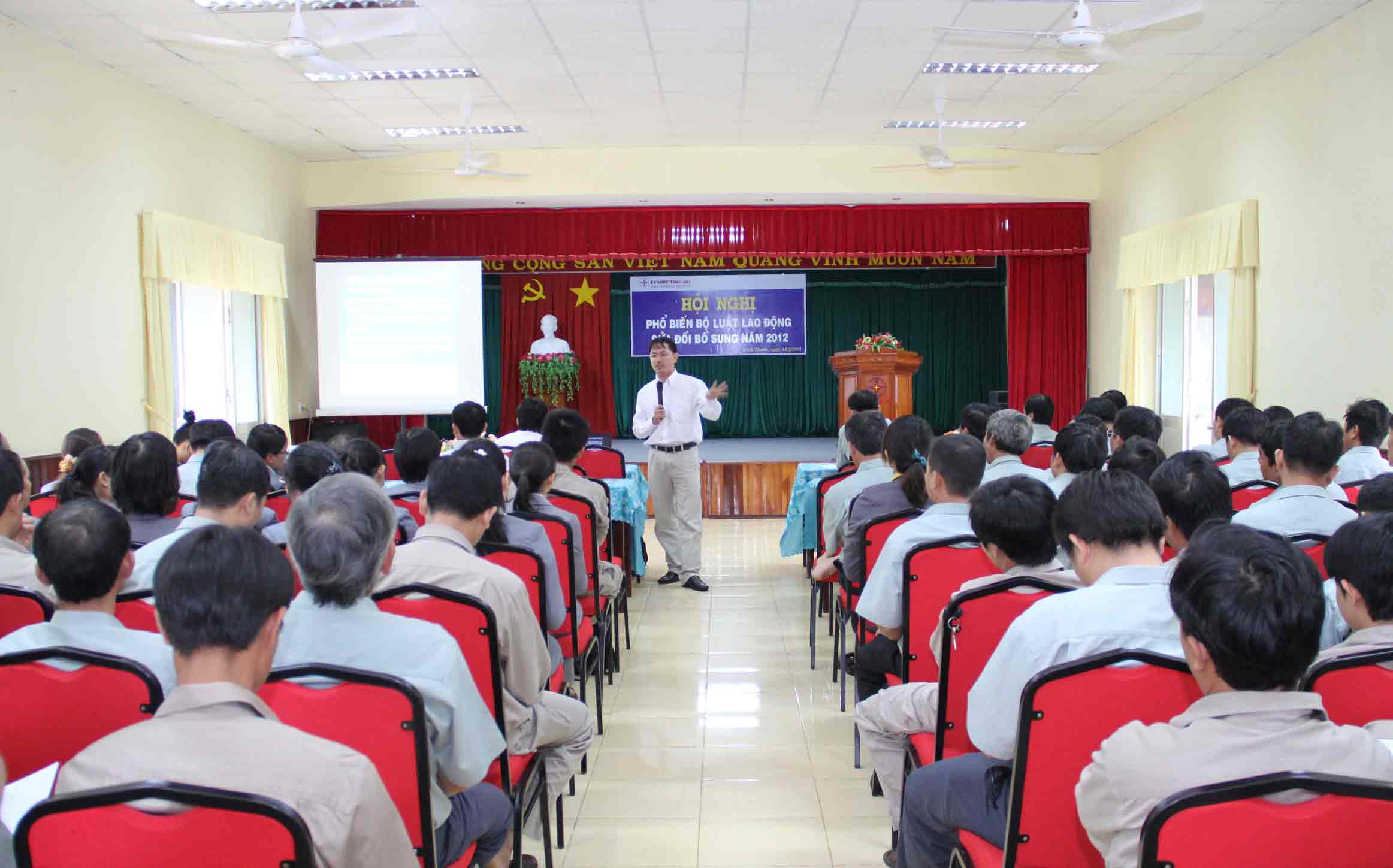 Việc tổ chức Hội nghị phổ biến Luật lao động sửa đổi, bổ sung năm 2012, nhằm góp phần nâng cao hiệu quả thực thi pháp luật lao động và công tác quản lý nhà nước về pháp luật lao động đồng thời thể hiện quan điểm hợp tác bình đẳng, minh bạch, công khai giữa Công ty với người lao động./.