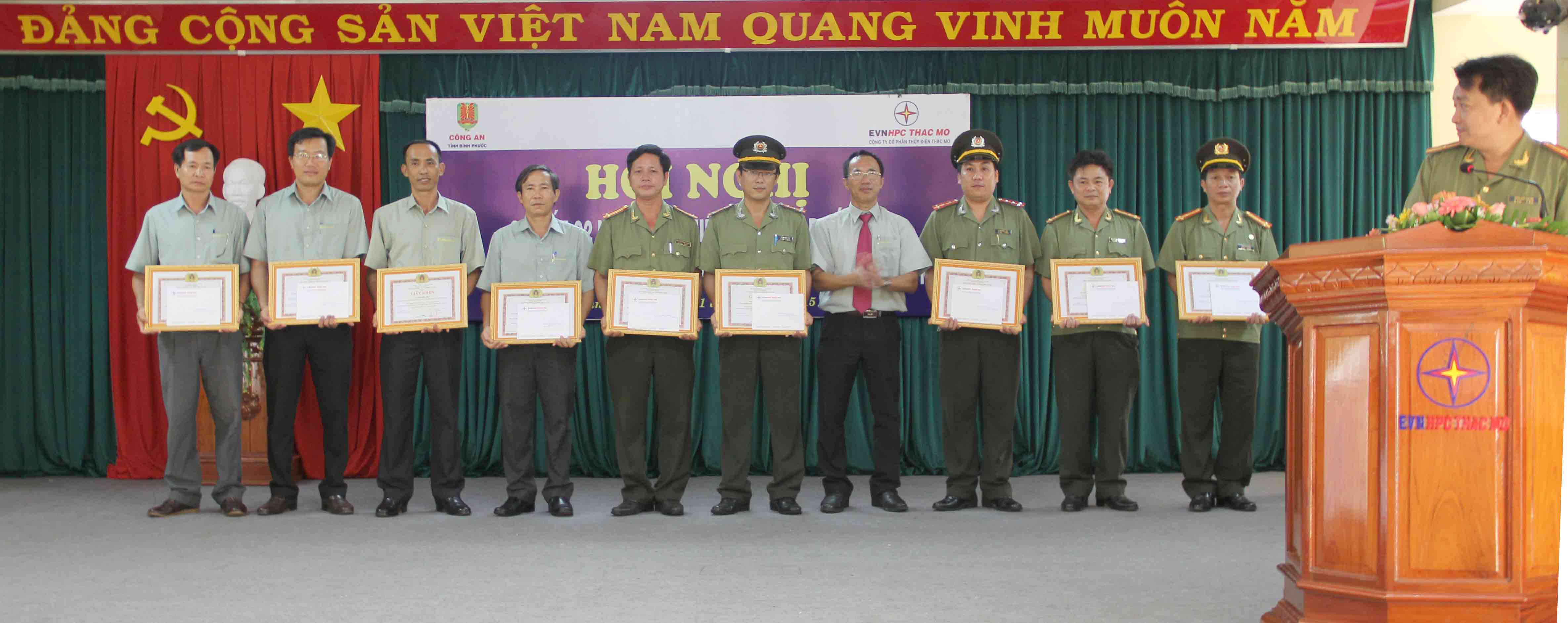 Thừa ủy quyền của Công an tỉnh Bình Phước, Đ/C Đại Tá Nguyễn Mạnh Hổ - Trưởng Phòng an ninh kinh tế tỉnh Bình Phước đã chủ trì hội nghị. Sau các báo cáo tình hình an ninh công trình của Công an thị xã Phước Long, huyện Bù Đăng và huyện Bù Gia Mập, Hội nghị đã ghi nhận được nhiều ý kiến nhằm nâng cao hiệu quả trong quá trình bảo vệ an ninh công trình trong thời gian sắp tới. Nhân dịp này, Công an tỉnh Bình Phước đã khen thưởng cho 10 cá nhân và 3 đơn vị đã có thành tích xuất sắc trong quá trình triển khai Quy chế phối hợp bảo vệ công trình thủy điện Thác Mơ trong 2 năm qua.