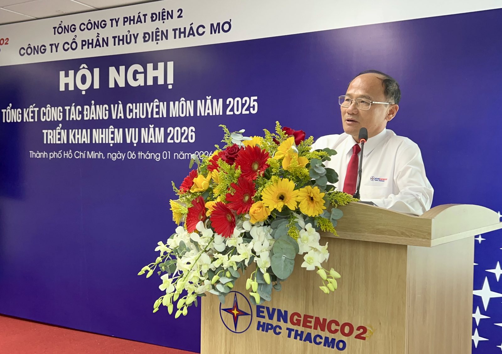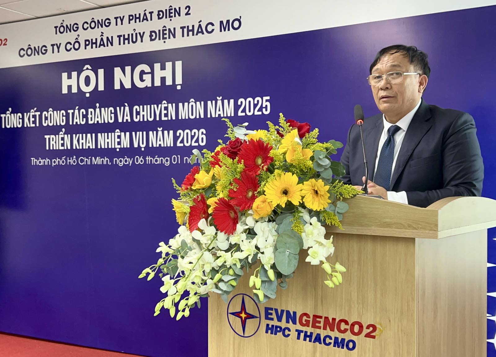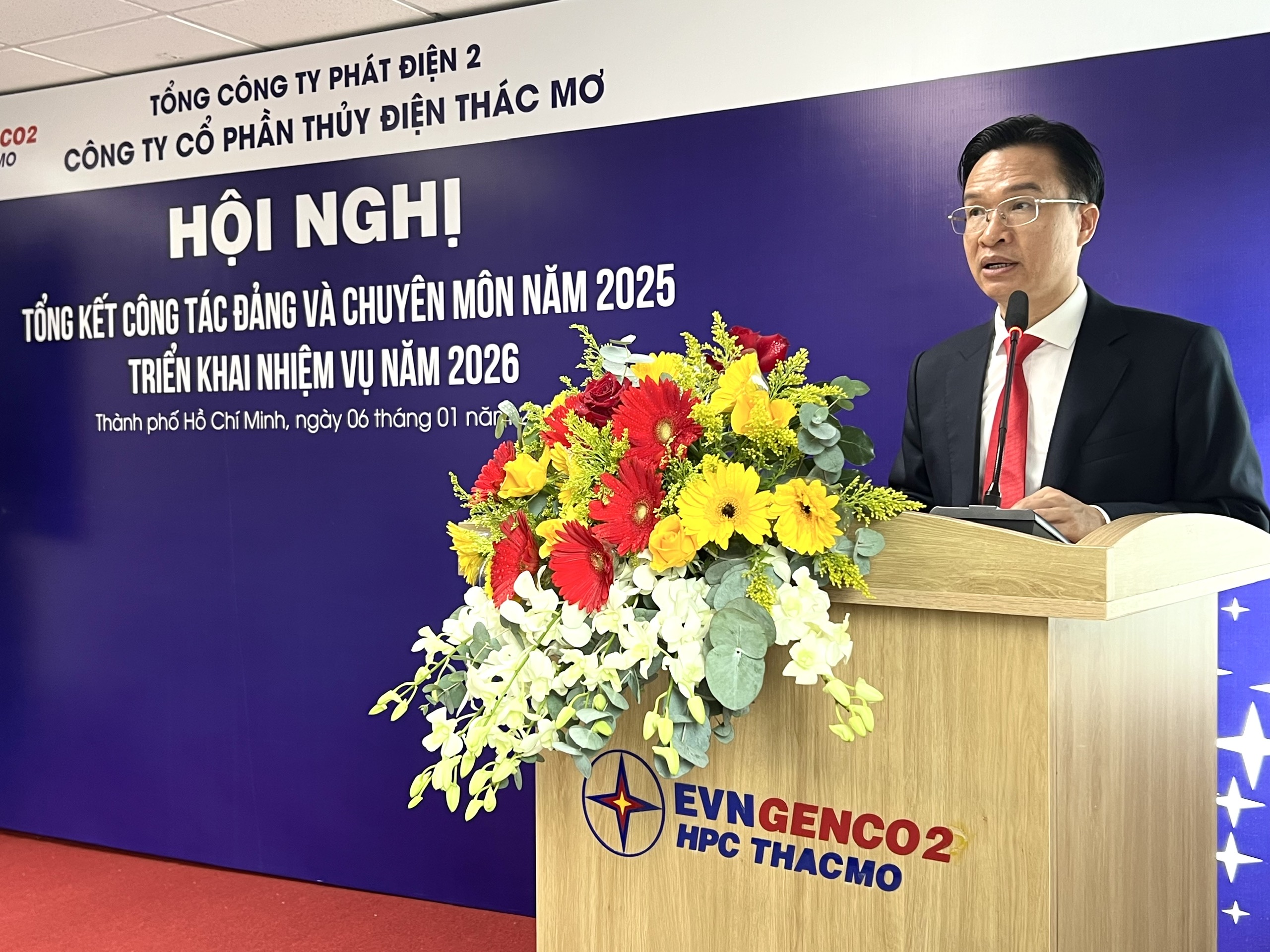 Phát biểu chỉ đạo tại Hội nghị, Đồng chí Trần Phú Thái - Bí thư Đảng ủy, Chủ tịch HĐQT EVNGENCO2 ghi nhận, đánh giá cao những kết quả Đảng bộ và tập thể Công ty CP Thủy điện Thác Mơ đã đạt được trong năm 2025; đồng thời định hướng Công ty tiếp tục phát huy vai trò lãnh đạo của tổ chức Đảng, nâng cao hiệu quả quản trị doanh nghiệp, đẩy mạnh ứng dụng khoa học công nghệ và chuyển đổi số trong thời gian tới.