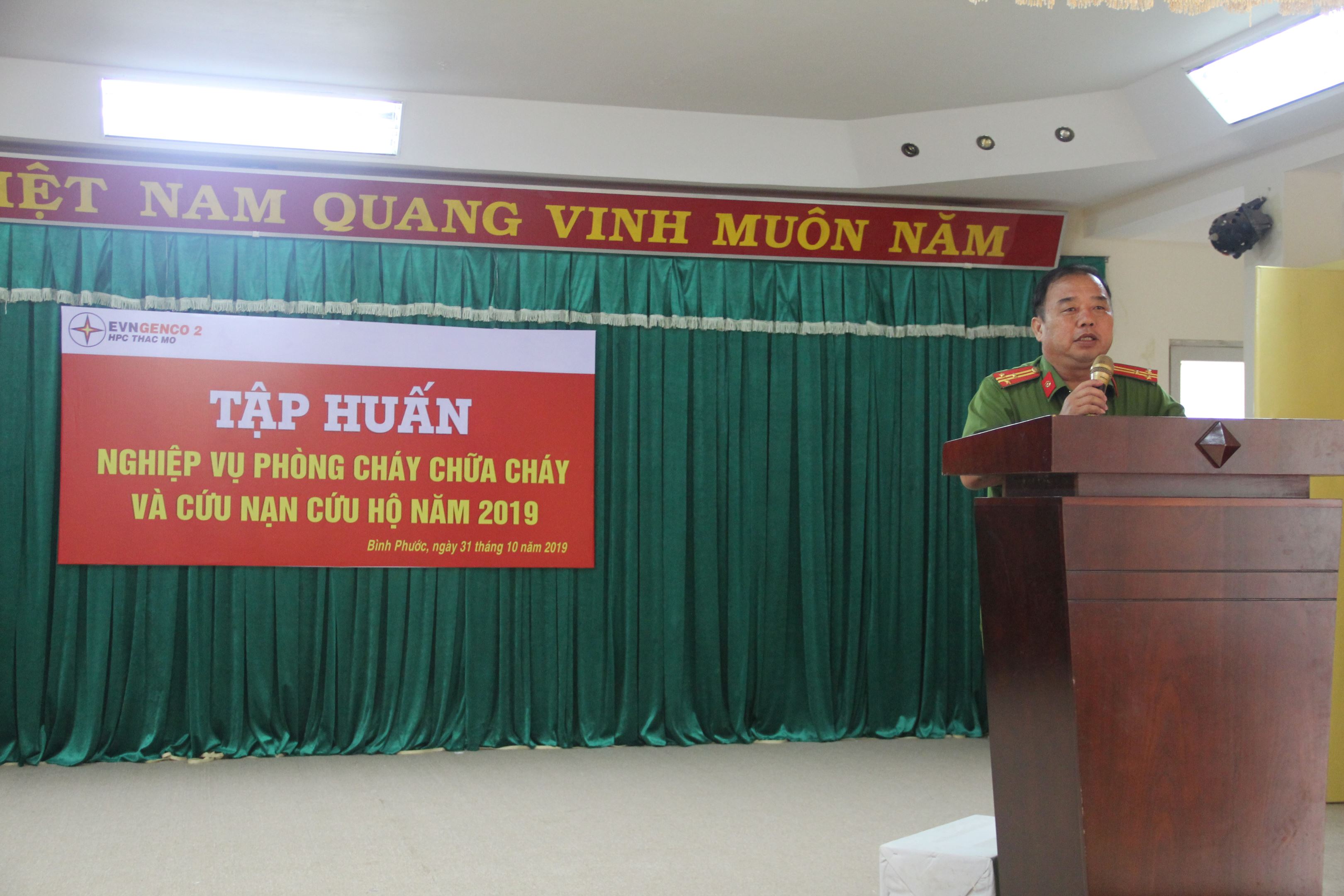 Trong bốn giờ đồng hồ, Phòng Cảnh sát PCCC & CNCH Công an tỉnh Bình Phước đã phối hợp với Công ty tổ chức giới thiệu các văn bản quy định Pháp luật của nhà nước về công tác PCCC, phổ biến một số vụ cháy điển hình xảy ra trong địa bàn tỉnh Bình Phước để CBCNV Công ty xem và rút kinh nghiệm. Cán bộ PCCC cũng trình bày một số nguyên nhân gây ra cháy và các biện pháp đề phòng, hướng dẫn cách phòng cháy và chữa cháy cơ bản như: Phòng cháy và chữa cháy Nhà máy điện, trạm biến áp; Phòng cháy và chữa cháy nơi sản xuất và tại nơi làm việc, hướng dẫn cách sử dụng các loại bình chữa cháy xách tay, cách sử dụng cuộn vòi, con lăng cho toàn thể CBCNV Công ty. Đặc biệt năm nay công ty đã lồng ghép thêm cách xử lý trường hợp cháy bình gas tại hộ gia đình.