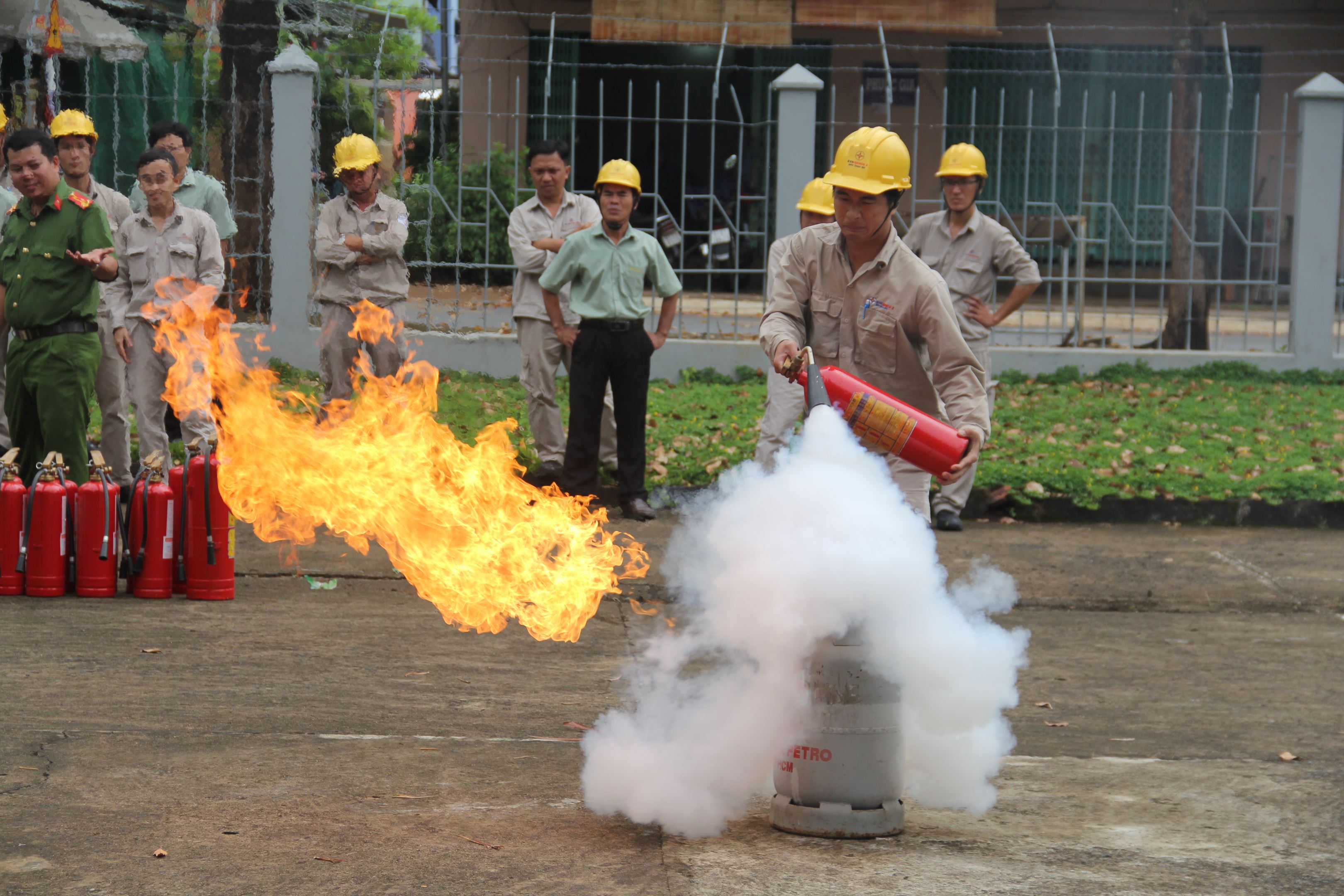 Chữa cháy bình gas bằng bình chữa cháy chuyên dụng