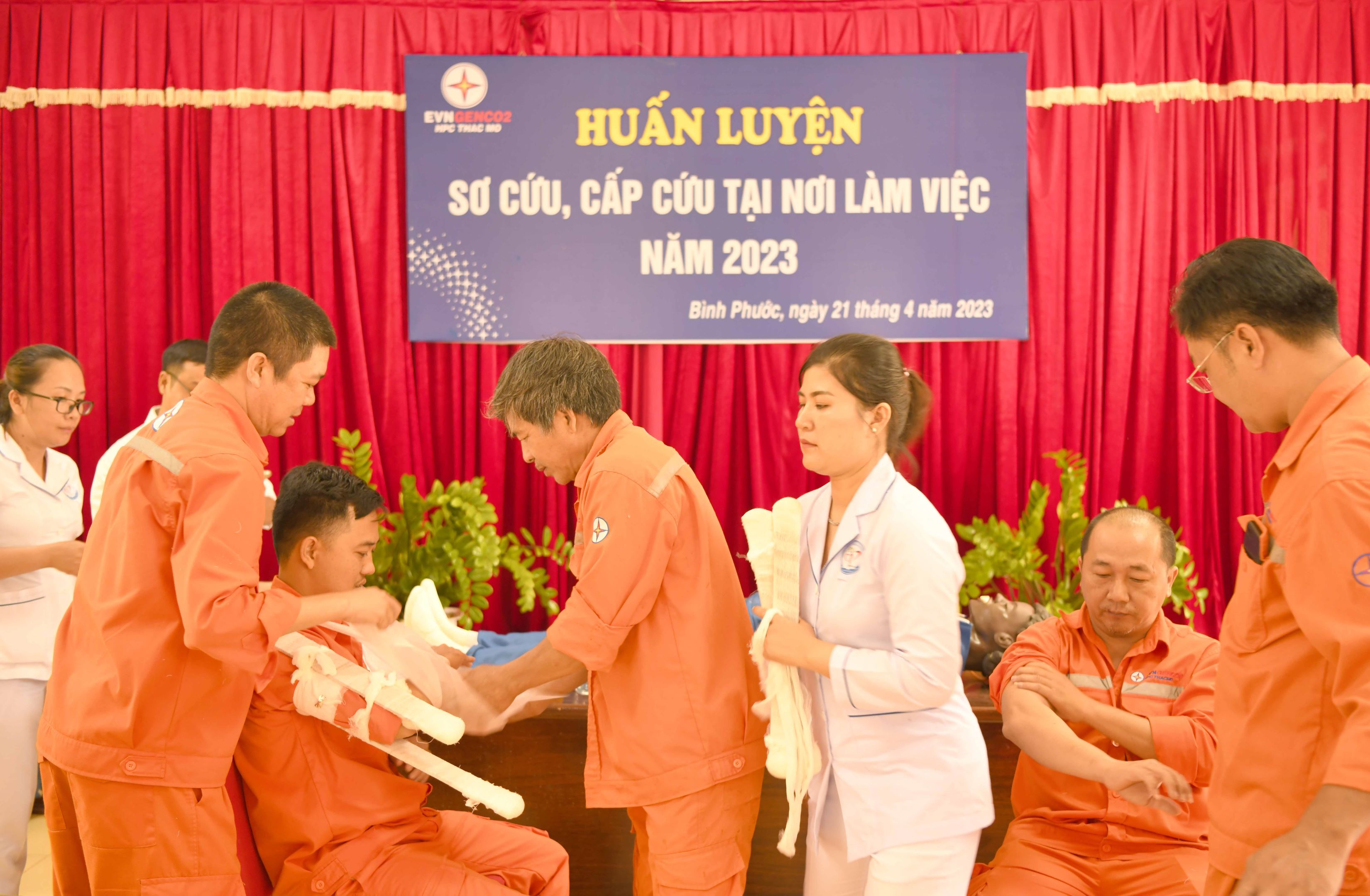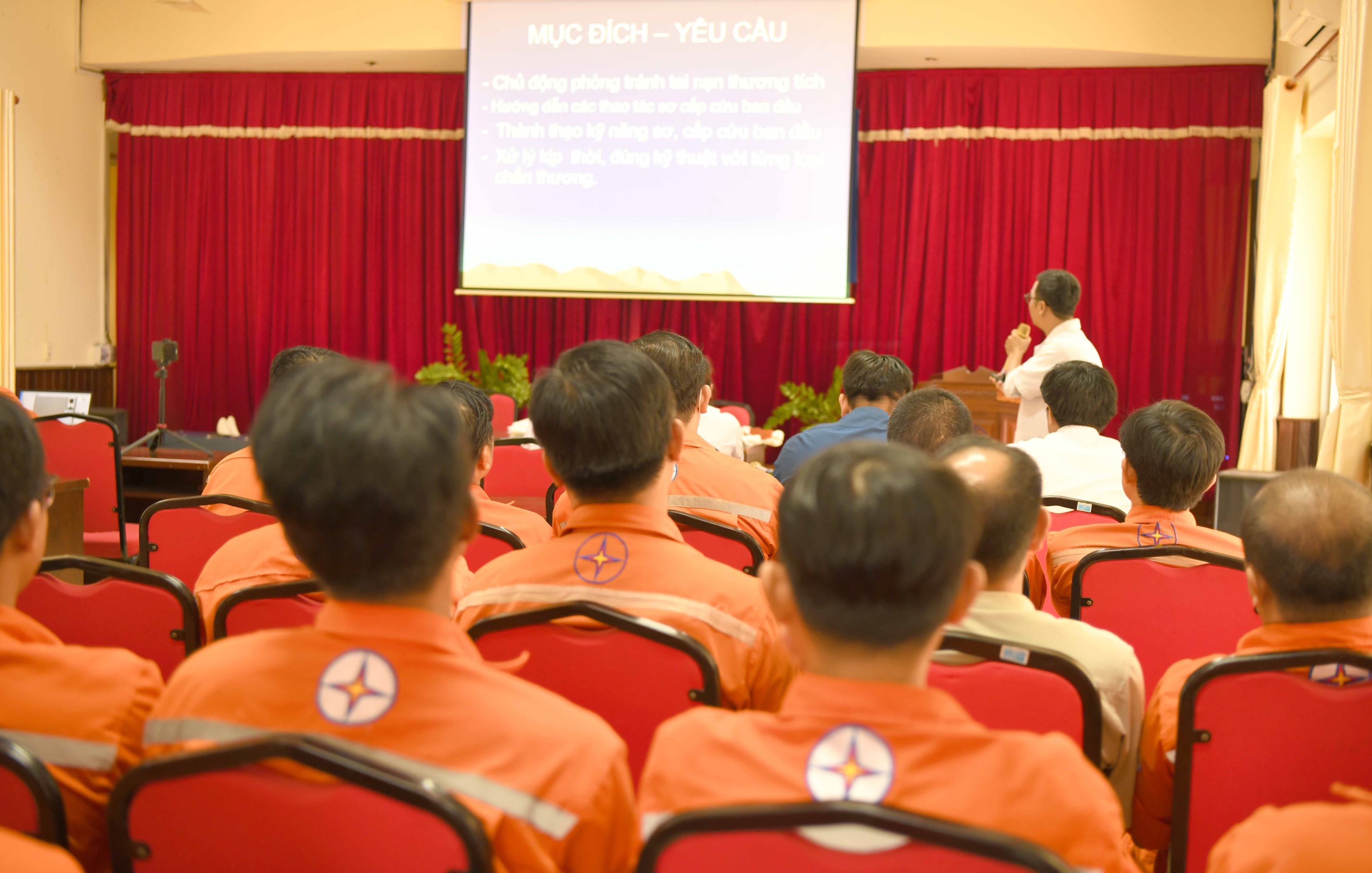 Tại buổi huấn luyện, bác sĩ chuyên khoa 1 La Đình Quảng đã cập nhật kỹ thuật sơ cấp cứu người bị nạn, mô tả các tai nạn có thể xảy ra trong quá trình lao động, kỹ thuật cứu người bị đuối nước. Các y tá đã hướng dẫn thực hành các kỹ năng thực hiện sơ cứu như: hô hấp nhân tạo trên hình nhân, cố định và băng bó vết thương ở tay và chân, băng bó vết thương ở vùng đầu, kỹ thuật sơ cấp cứu người ngưng tim, ngưng thở và một số kỹ năng linh hoạt khác để sẵn sàng vận dụng trong trường hợp có tai nạn lao động xảy ra.