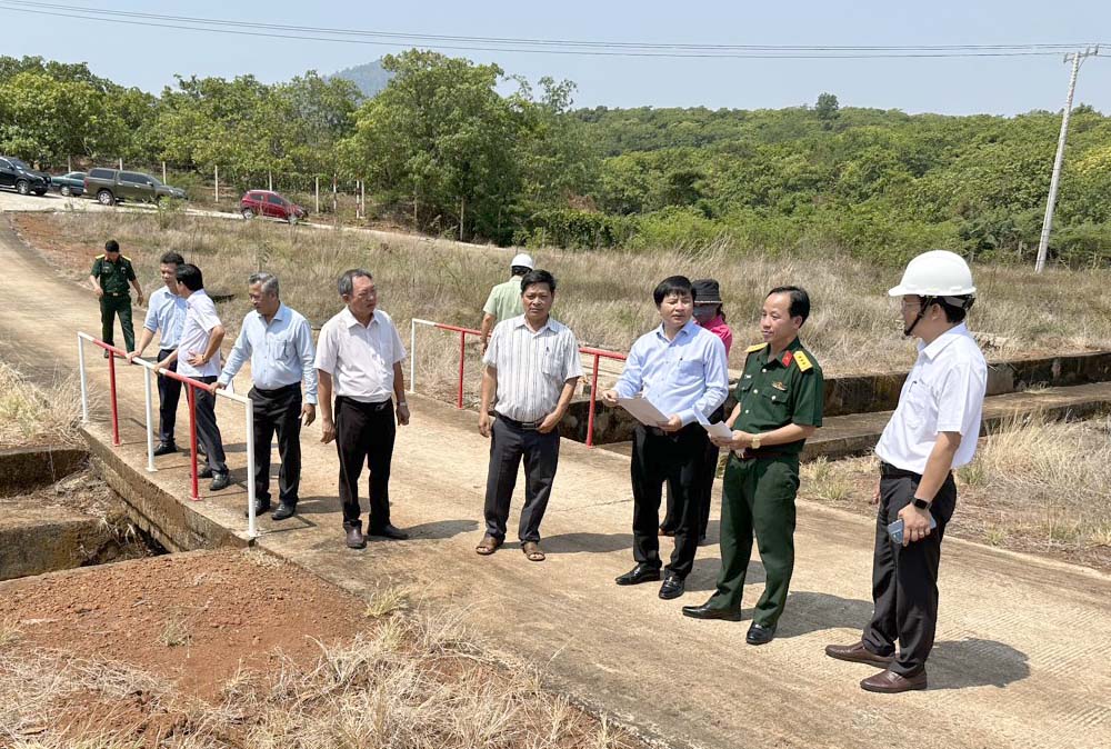 Đoàn đã đến khảo sát thực tế một số địa điểm dự kiến sẽ diễn ra cuộc diễn tập phòng thủ dân sự năm 2024 của tỉnh; qua khảo sát, các khu vực và công tác chuẩn bị cho nhiệm vụ diễn tập giả lập sự cố rò rỉ nước thấm sâu sau chân đập, làm xói mòn chân đập hồ thủy điện Thác Mơ; đoàn công tác đã xác định và thống nhất sơ đồ dự kiến bố trí các vị trí khu vực thực binh trong diễn tập phòng thủ dân sự.