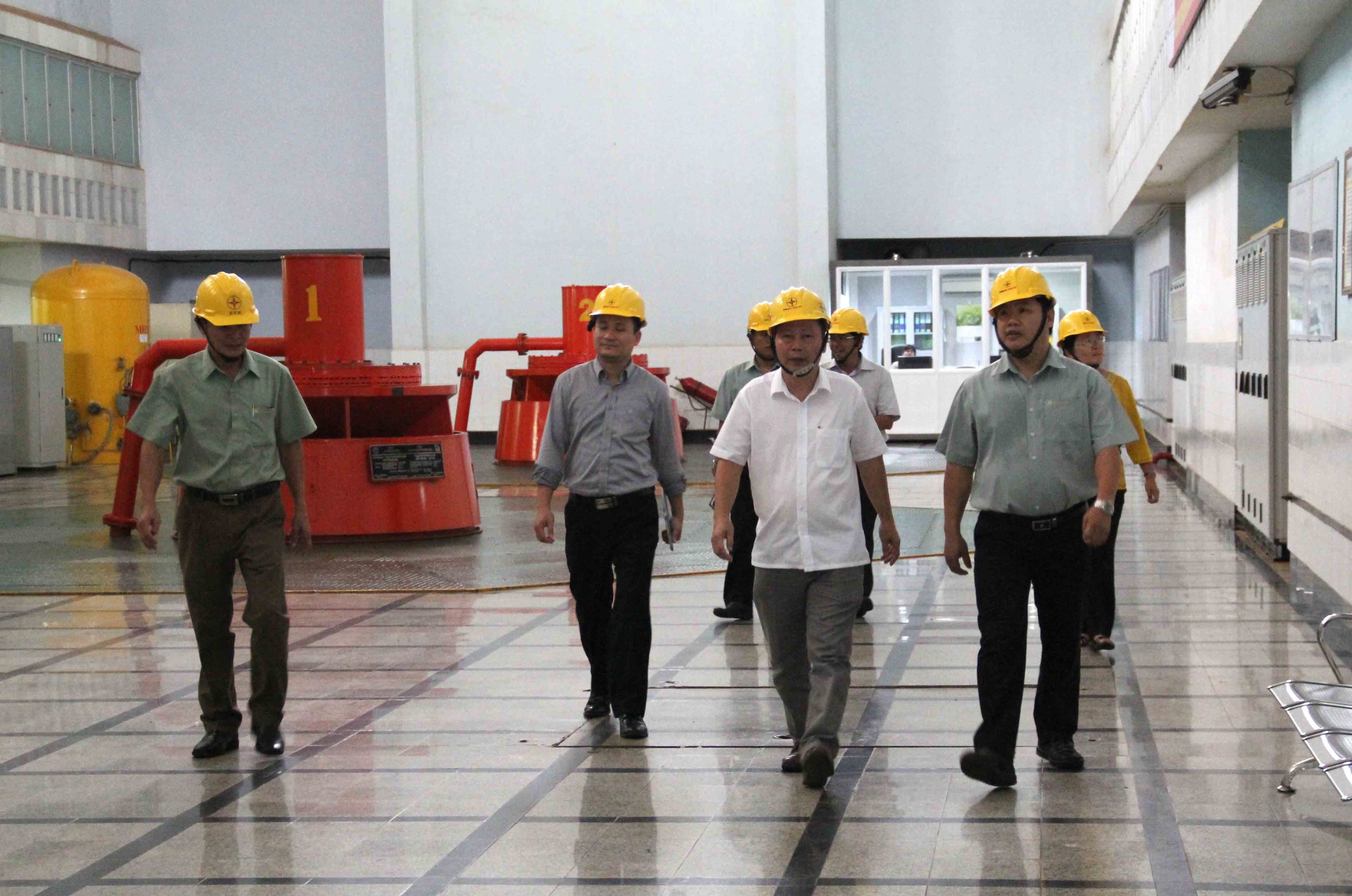 Đoàn công tác đã thị sát kho chứa chất thải nguy hại (CTNH) tại nhà kho Công ty, hệ thống xử lý nước và môi trường khu vực nhà máy điện.