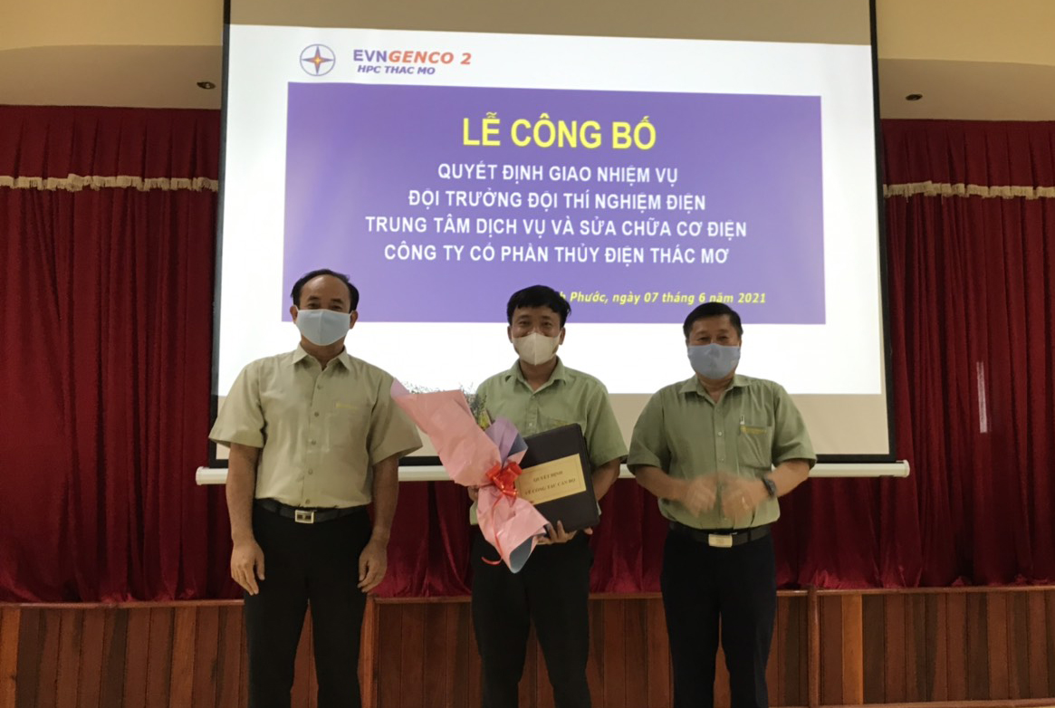 Theo đó, Ông Hồ Như Thiện Thọ, Đội trưởng Đội Thí nghiệm điện, Trung tâm Dịch vụ và Sửa chữa Cơ điện (MSC) được điều động đến làm việc tại Phân xưởng Vận hành, giữ chức vụ Phó Quản đốc và ông Đặng Ngọc Tú hiện là Phó Giám đốc Trung tâm Dịch vụ và Sửa chữa Cơ điện được giao nhiệm vụ kiêm nhiệm Đội trưởng Đội Thí nghiệm điện kể từ ngày 07 tháng 06 năm 2021.