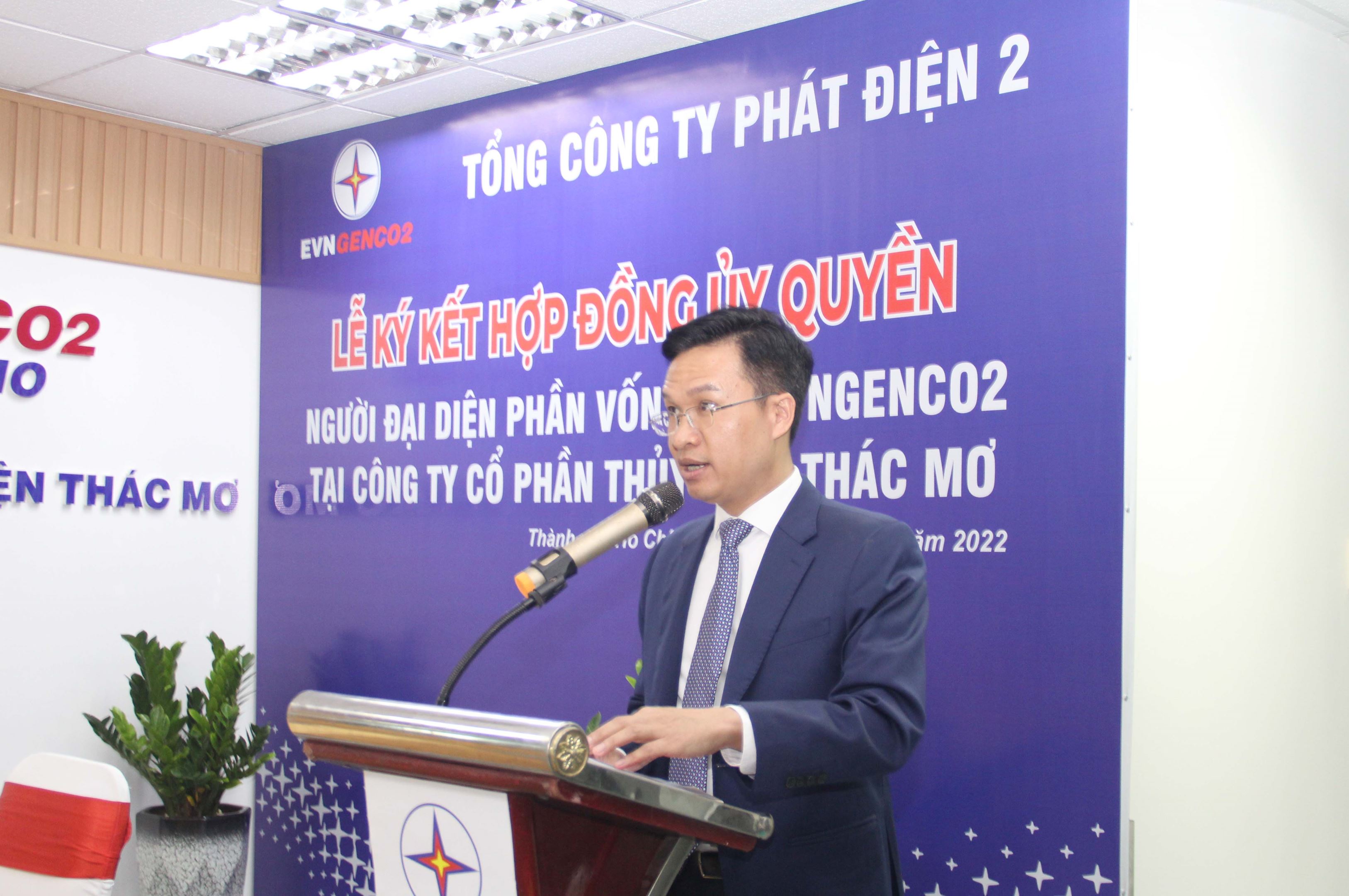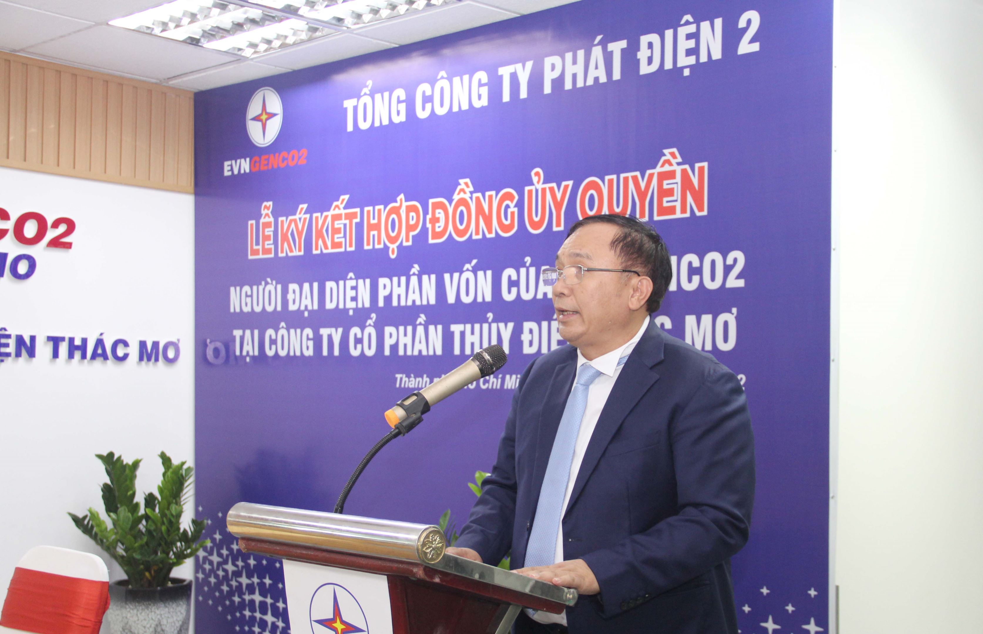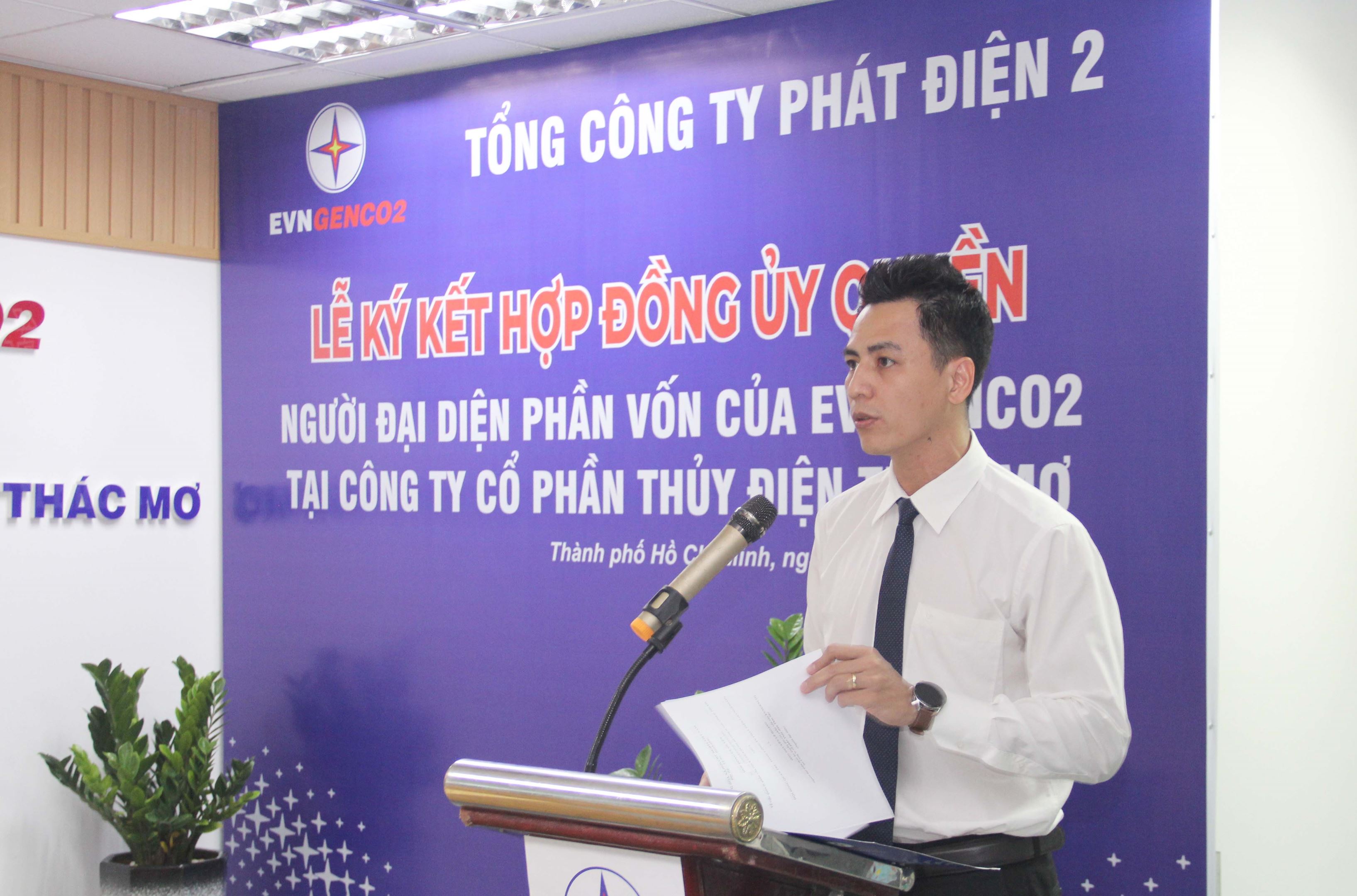 Phát biểu chỉ đạo tại Lễ ký kết, ông Trần Phú Thái – Chủ tịch Hội đồng quản trị EVNGENCO2 giao nhiệm vụ cho ông Nguyễn Lê Hoàng, yêu cầu thực hiện tốt nghĩa vụ của Người được ủy quyền: Tư vấn cho Hội đồng quản trị, Ban Tổng giám đốc hướng tới phát triển TMP ngày càng lớn mạnh; chú trọng vận hành ổn định, an toàn các Nhà máy điện, các công trình hồ đập; đề xuất kế hoạch phát triển sản xuất, khai thác triệt để tiềm lực sẵn có nhằm nâng cao hiệu quả SXKD; phát huy thế mạnh Văn phòng làm việc TMP tại Thành phố Hồ Chí Minh, mở rộng đối tác tiềm năng phát triển kinh doanh theo đúng luật định; chú trọng thực hiện các nhiệm vụ liên quan đến Đề án chuyển đổi số của EVN…