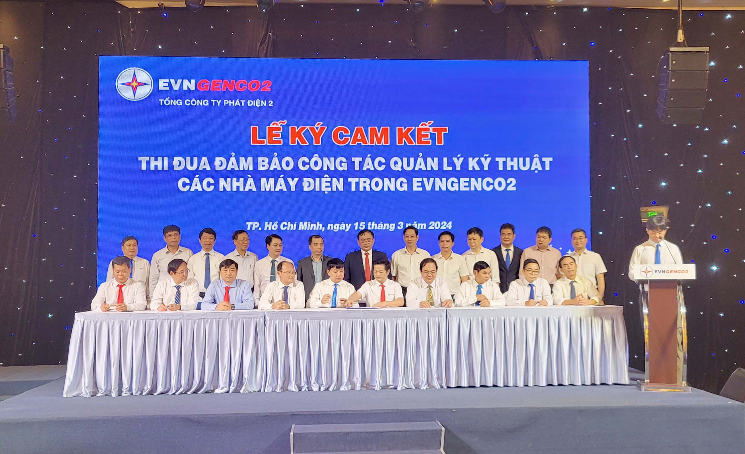 Với tinh thần đồng thuận, 10 Đơn vị thành viên đồng thuận ký cam kết “Thi đua đảm bảo công tác quản lý kỹ thuật các nhà máy điện trong EVNGENCO2”, quyết tâm của đội ngũ cán bộ Lãnh đạo quản lý và kỹ thuật viên, vận hành viên nâng cao hiệu quả quản lý vận hành sửa chữa, hoàn thành tốt nhiệm vụ Kế hoạch SXKD năm 2024.