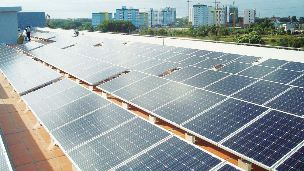 Hệ thống pin mặt trời lắp đặt trên tòa nhà Viện MT&TN - Đại Học Quốc Gia TP HCM - Nguồn: Internet