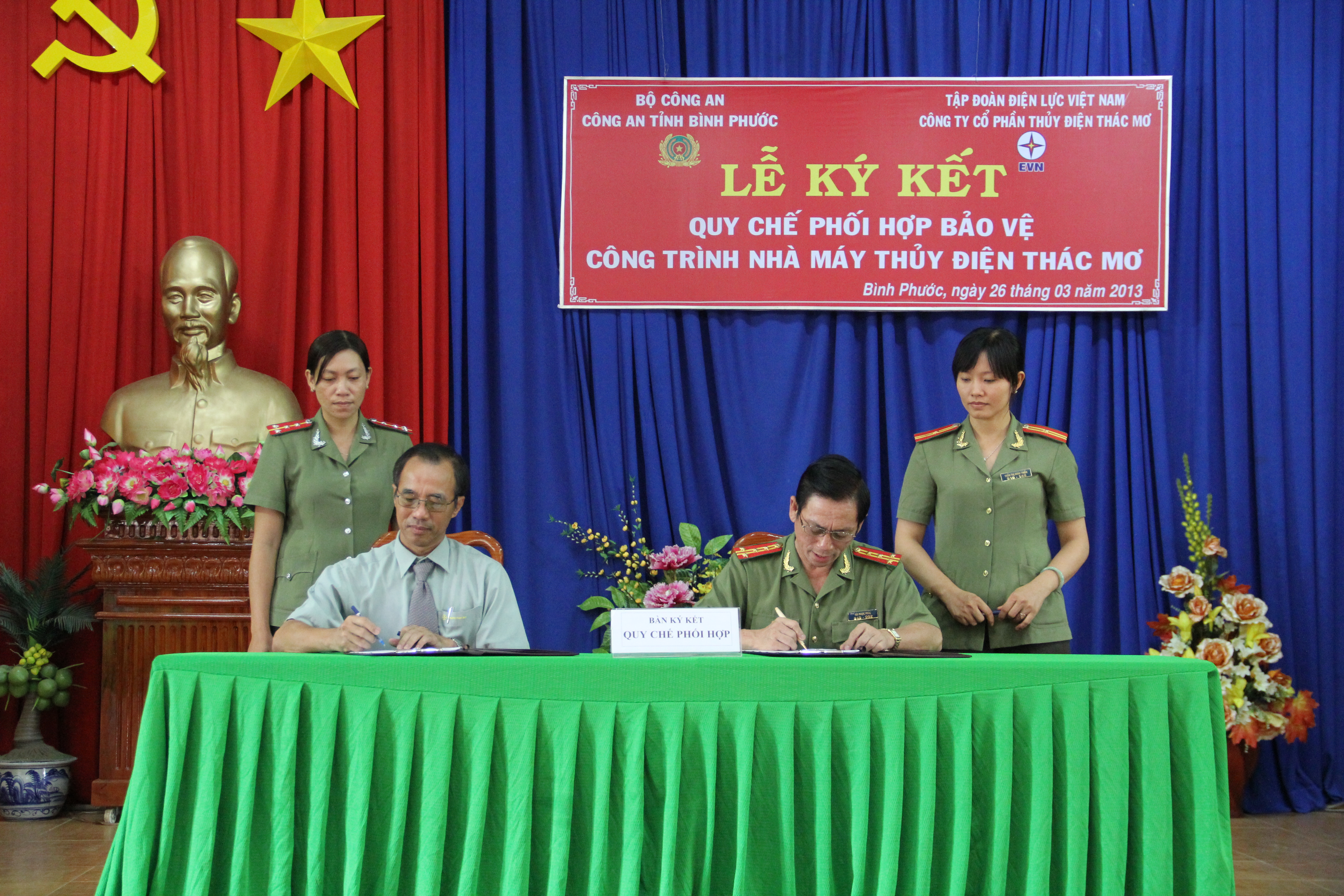 Ngày 26/03/2013, tại Hội trường Công an tỉnh Bình Phước, Công ty cổ phần thủy điện Thác Mơ đã phối hợp với Công an tỉnh Bình Phước tổ chức Lễ ký kết Quy chế phối hợp bảo vệ an toàn Công trình Nhà máy thủy điện Thác Mơ.