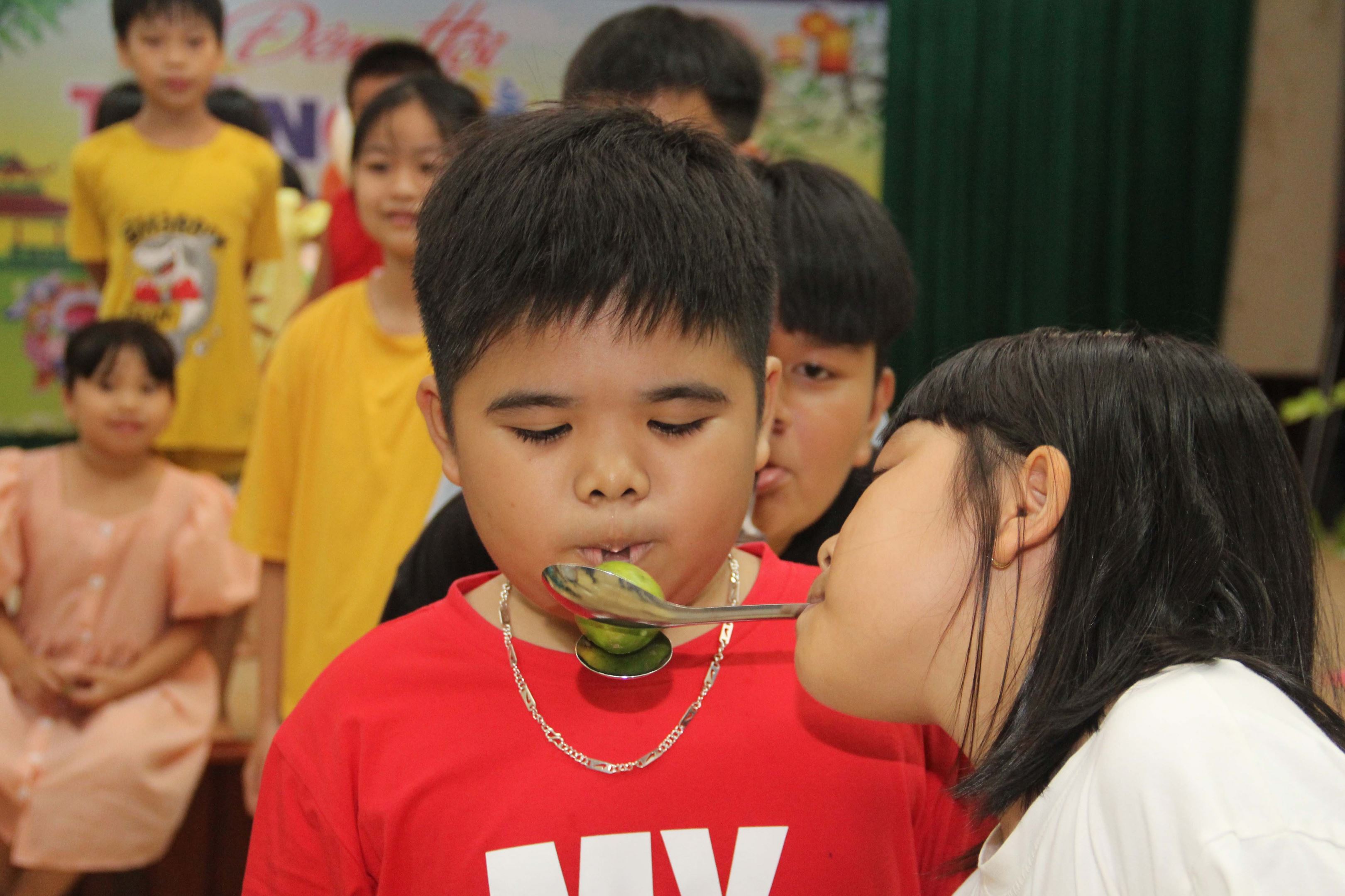 Các em thiếu nhi tham gia trò chơi "Đạp bóng"