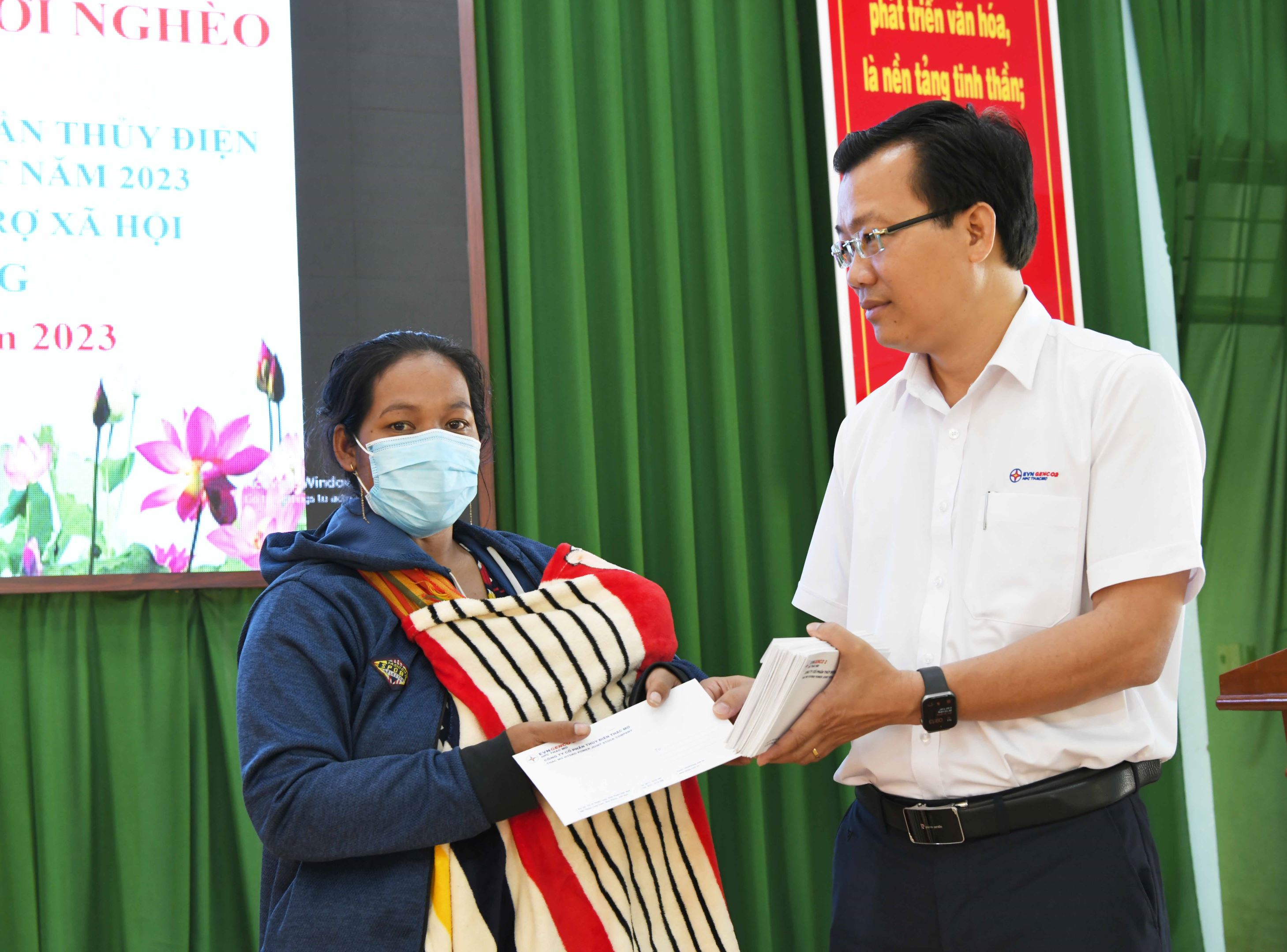 Ông Ngô Thành Danh – Phó trưởng Phòng HCLĐ, đại diện TMP trao quà Tết cho phụ nữ S’tiêng có con nhỏ là người nghèo